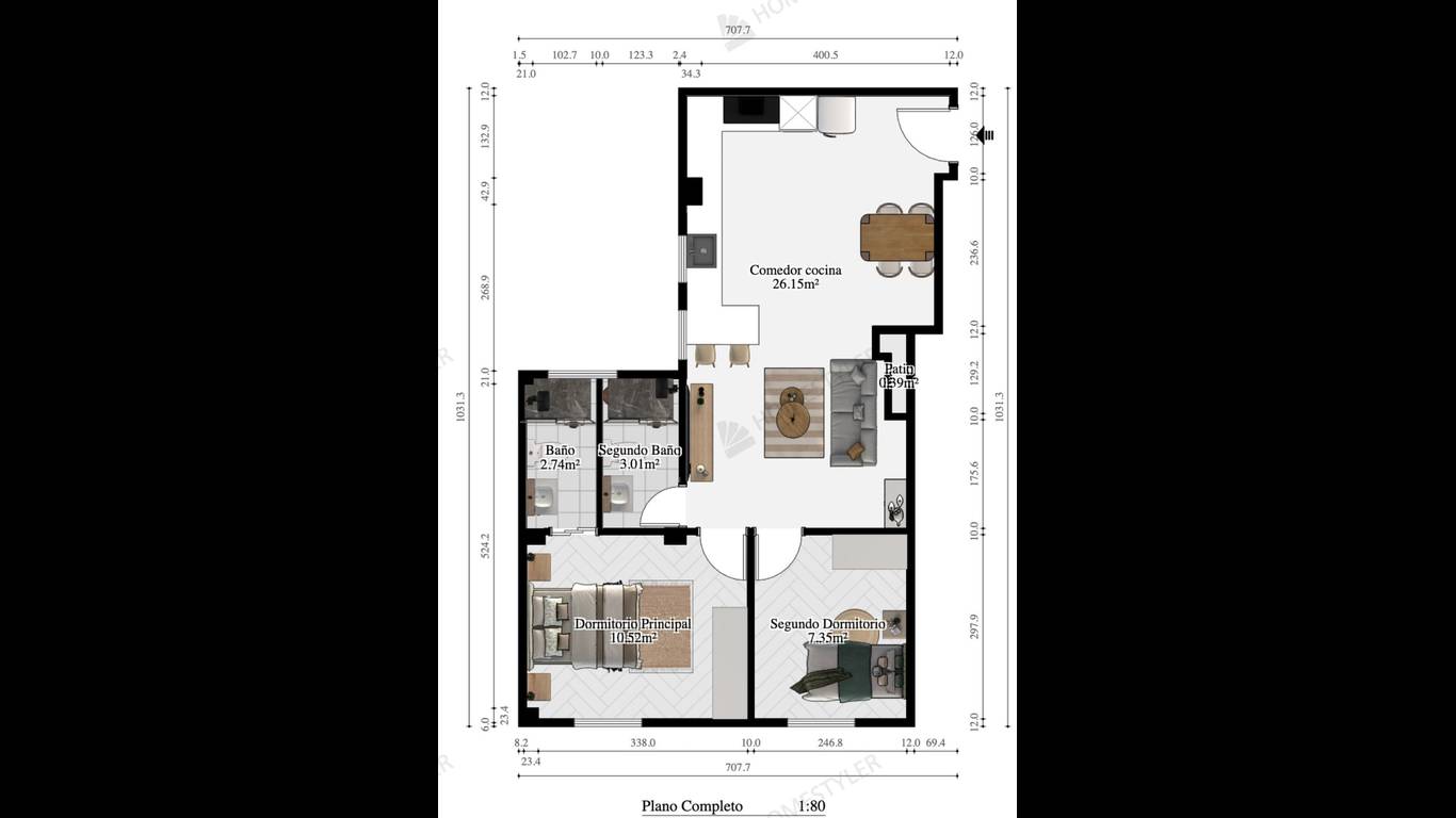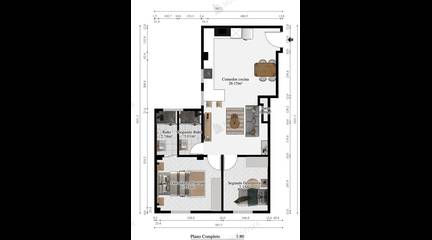The main living area is an open and very pleasant space, with an integrated living-dining room and kitchen, a modern layout that makes the apartment feel more spacious, bright, and inviting.