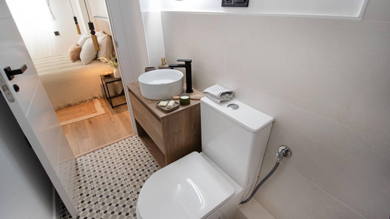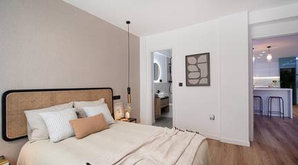 The apartment has a very practical and modern layout, with two bedrooms, both with built-in wardrobes. The master bedroom has an en-suite bathroom, providing extra privacy and convenience. In addition, the apartment has a second full bathroom, perfect for the other bedroom or for guests.