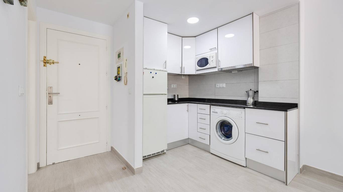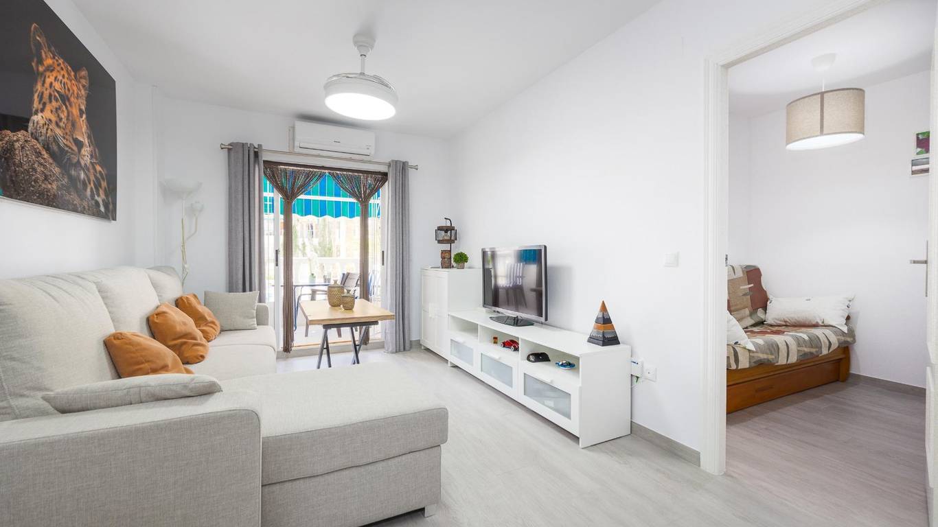 A solo 250 metros del mar, se ofrece un atractivo y luminoso apartamento reformado en la urbanización privada VIÑA MAR IV. Este encantador inmueble cuenta con una superficie construida de 44 m, distribuidos eficientemente en una acogedora habitaciones mas vestidor convertible en habitacion que brindan confort y tranquilidad.