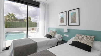 MODERN VILLAS IN CALASPARRA WITH PRIVATE POOL New real estate development consisting of 215 independent villas in Calasparra. 170 villas will be built on plots of 545 m and 45 villas on plots of 1,250 m. 2 and 3 bedroom homes with a private pool of 24.5 m2 included, modern finishes and maximum qualities: Matt black aluminum windows, motorized blinds, armored entrance door to the house, white lacquered interior doors, aerothermal system for hot water production, quartz (silestone) countertop in kitchen, electrical appliances included, pre-installation of air conditioning by ducts.