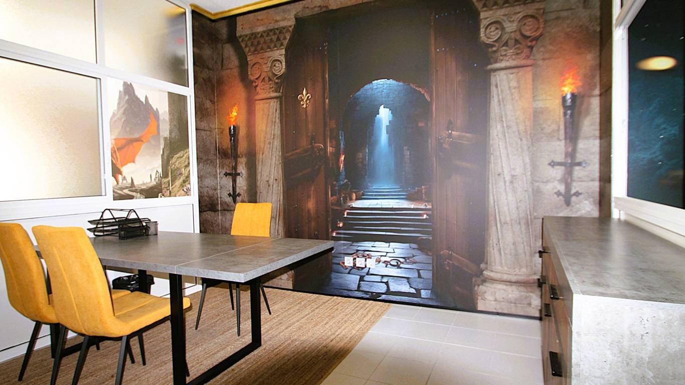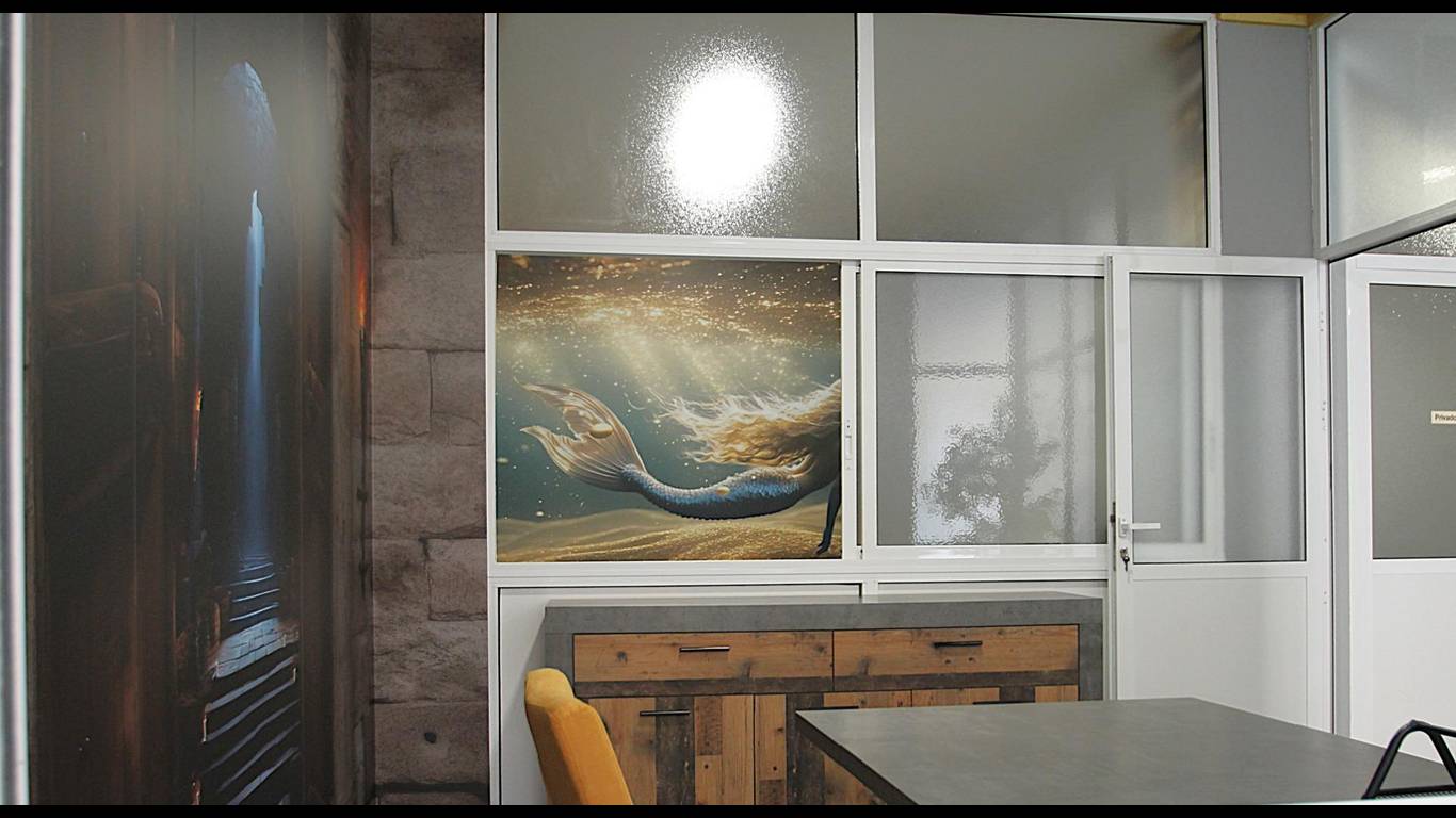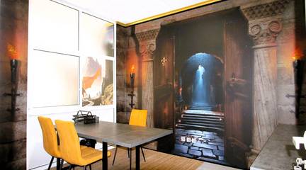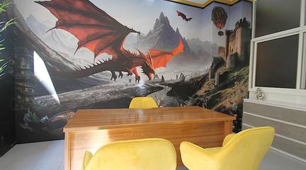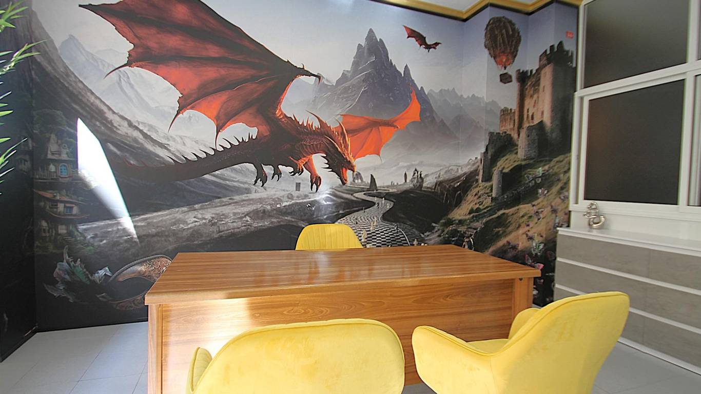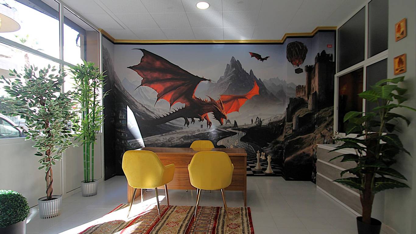 Perfect for offices, clinics, childrens centres, or any business that wants to be right in the middle of everyday life. Right now, it has a very particular medieval-castle style décor. Eye-catching, yes.