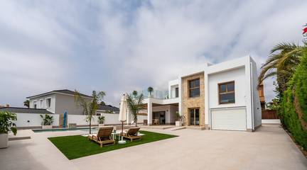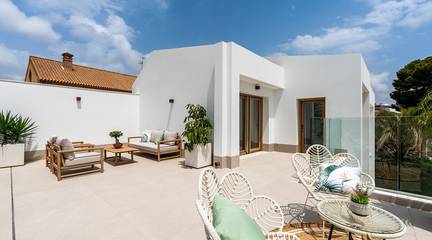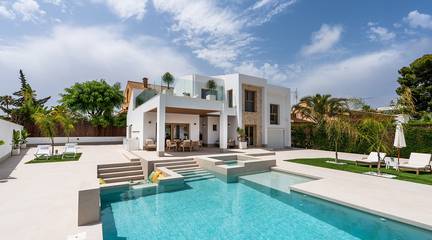 Situated in one of the quietest and most private areas of Campoamor, this spectacular villa combines luxury, comfort, and an exceptional location just 800 meters from the beaches of Cala de Campoamor and Playa de los Diez Picos.