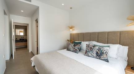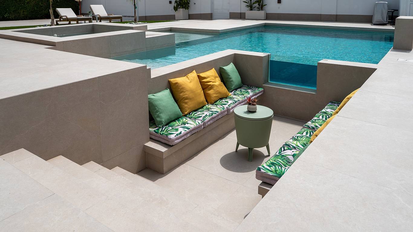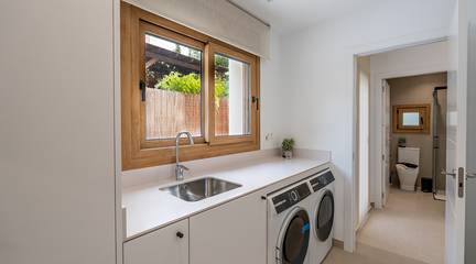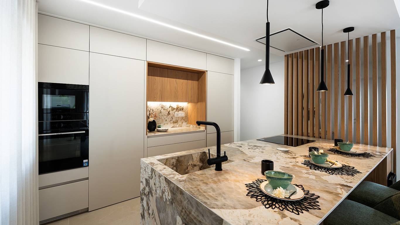 The chill-out area, atmospherically lit with LED lighting, creates the perfect setting for relaxation. The outdoor kitchen makes this villa the ideal place to enjoy the Mediterranean climate with family and friends.