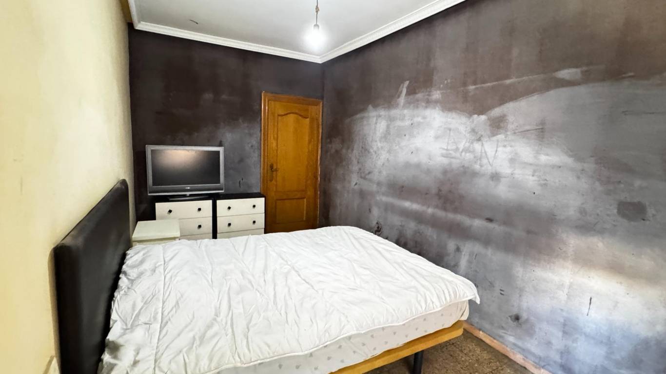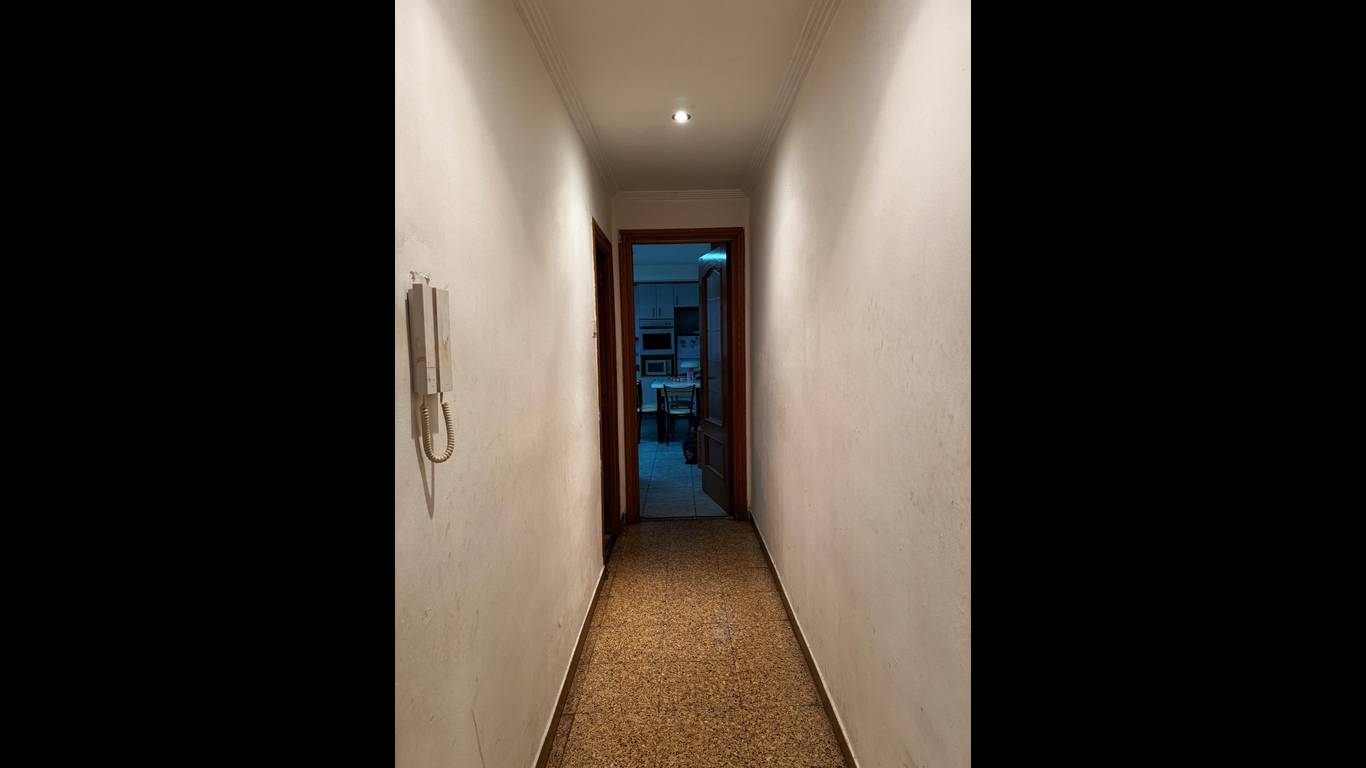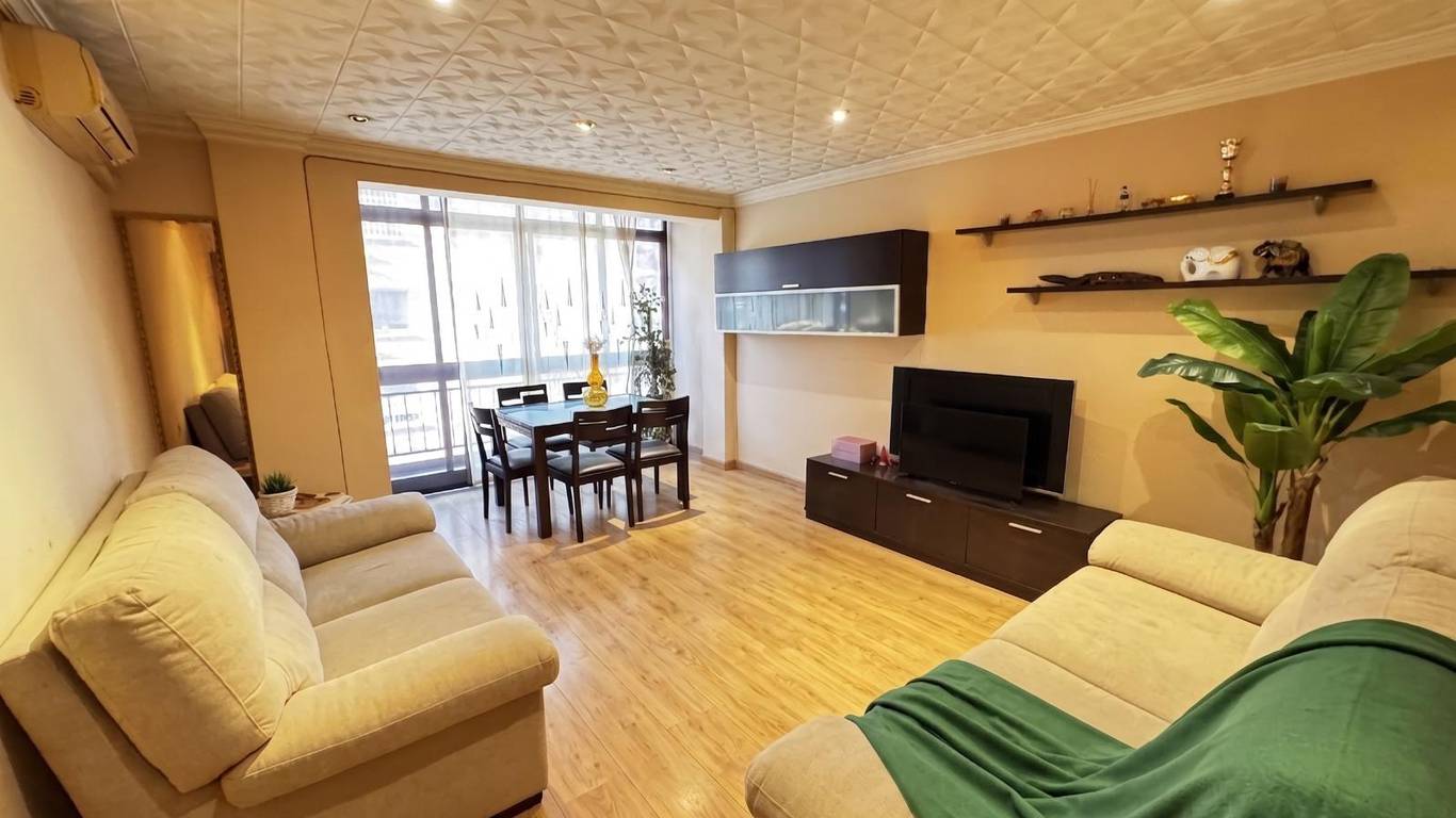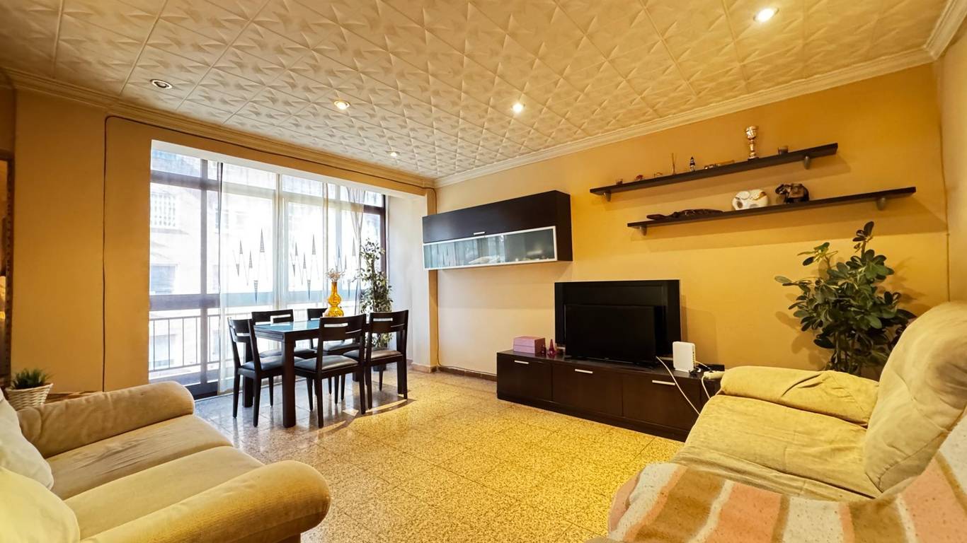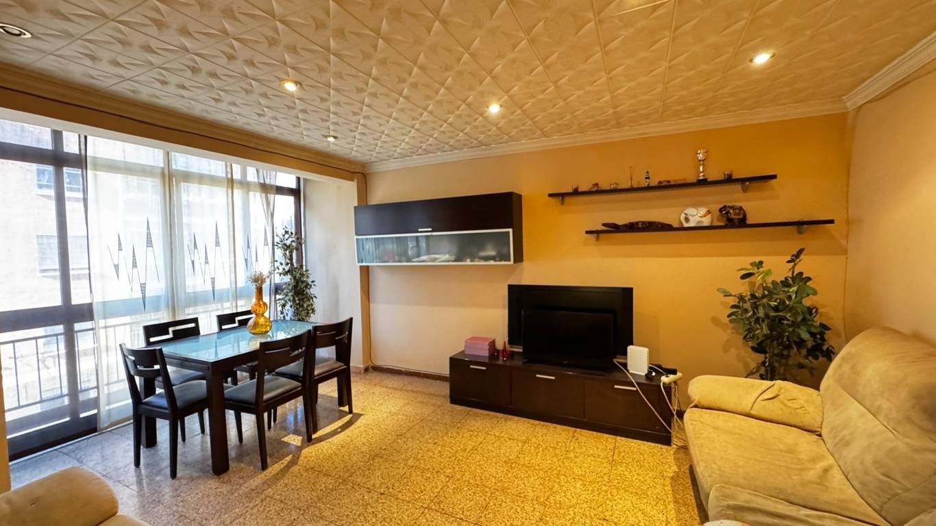 The property features a spacious 18.5 m living-dining room (formerly with a balcony), three bedrooms, and a large kitchen with a storage room. The location is excellent: just a 1-minute walk from Amado Granell-Montolivet metro station, only two stops from Calle Alicante station, with direct underground connections to Bailén, Xàtiva and Estación del Norte, providing easy access to the airport.
