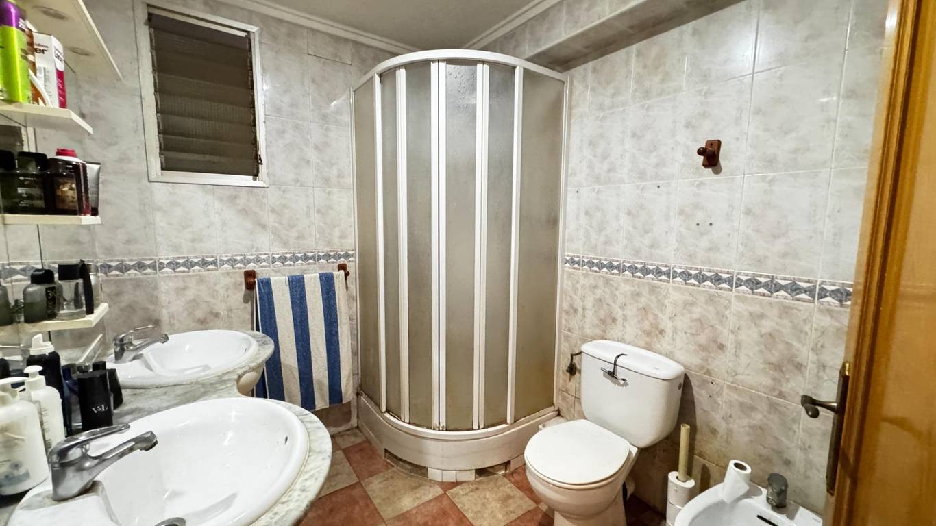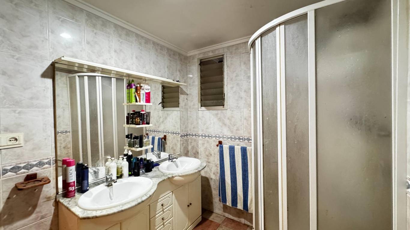 Further along, the property offers a full bathroom with shower and, finally, a spacious kitchen of approximately 16 m (formerly a bedroom and kitchen). There is also an outdoor utility area and a furnished storage room housing an electric boiler with an 80-litre tank, ensuring hot water for the whole household.