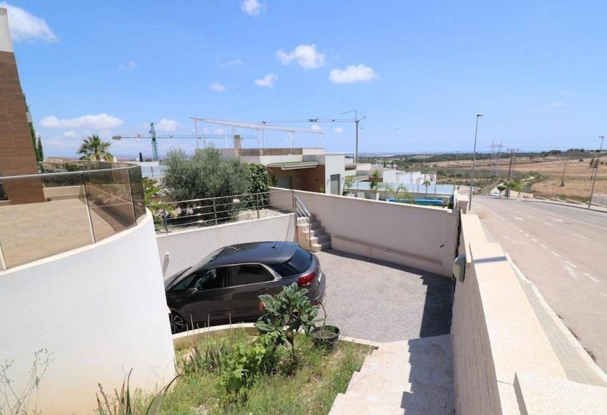 Residencial Vista Bella, San Miguel de Salinas, chalet en esquina con vistas al mar y a las salinas frente a parque y orientacion Sur con una parcela de 405 m2 y una vivienda en una planta de 100 m2 con 3 dormitorios, 2 baños, cocina con su isla abierta al salón, galería y un garaje con acceso directo a la vivienda de 153 m2, la vivienda dispone de un solarium de 60 m2, Piscina privada y se vende amueblada y con aire acondicionado.