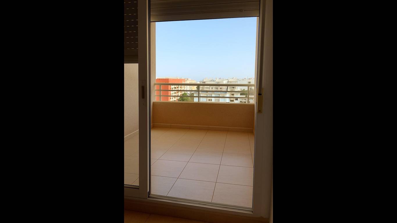 The apartment comes fully furnished and includes a spacious balcony facing south. 65 m built 2 bedrooms 1 bathroom Orientation: South Floor: 5th with lift Extras: Terrace Built-in wardrobes Swimming pool Second-hand / good condition Electric heating