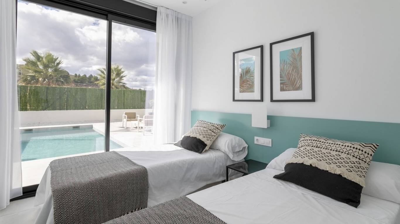 MODERN VILLAS IN CALASPARRA WITH PRIVATE POOL New real estate development consisting of 215 independent villas in Calasparra. 170 villas will be built on plots of 545 m and 45 villas on plots of 1,250 m. 2 and 3 bedroom homes with a private pool of 24.5 m2 included, modern finishes and maximum qualities: Matt black aluminum windows, motorized blinds, armored entrance door to the house, white lacquered interior doors, aerothermal system for hot water production, quartz (silestone) countertop in kitchen, electrical appliances included, pre-installation of air conditioning by ducts.