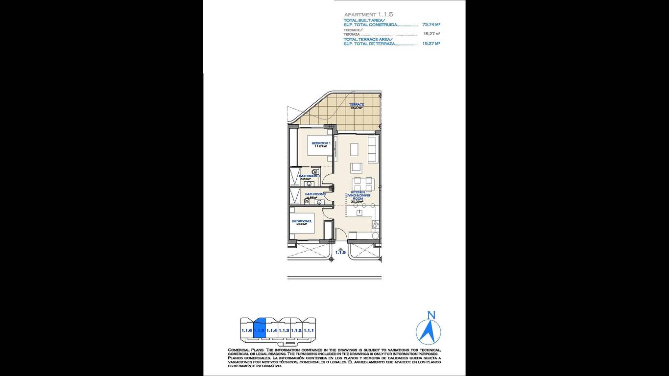 Floor: 1, Total floors: 1, Terrace: 15 m2