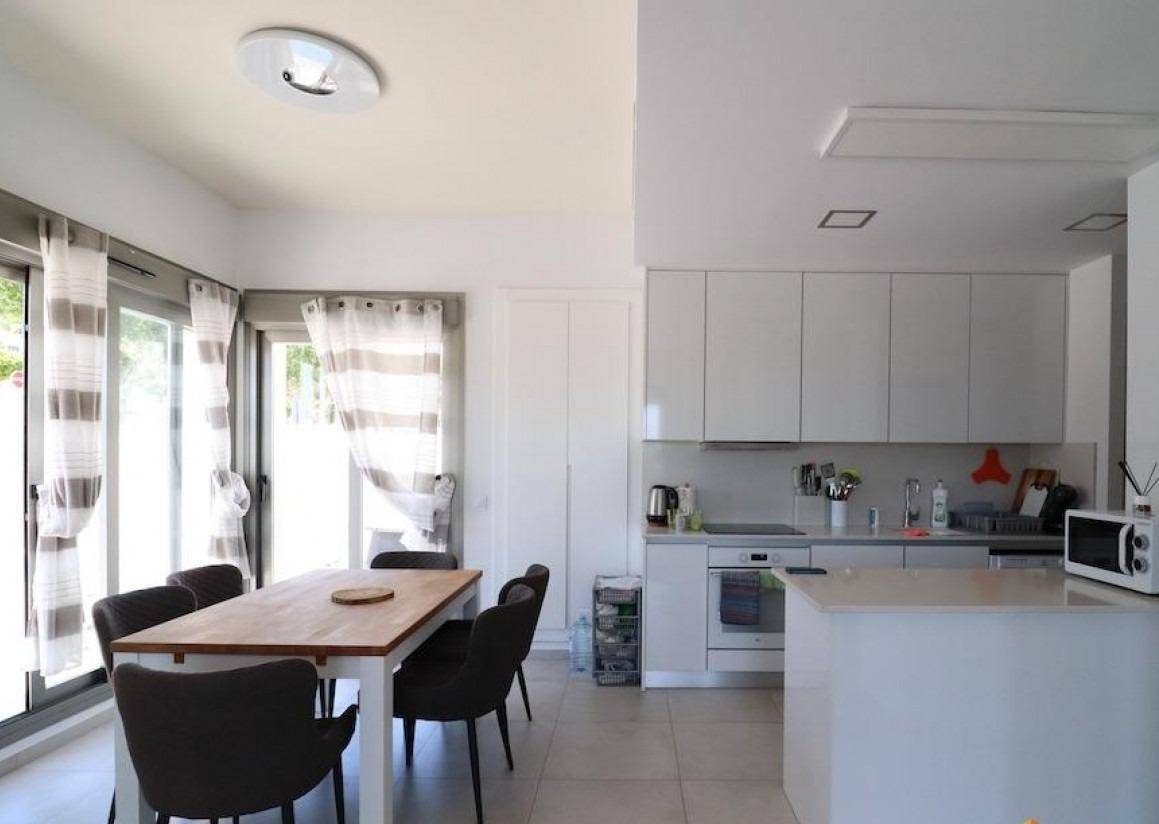 Residencial Vista Bella, San Miguel de Salinas, chalet en esquina con vistas al mar y a las salinas frente a parque y orientacion Sur con una parcela de 405 m2 y una vivienda en una planta de 100 m2 con 3 dormitorios, 2 baños, cocina con su isla abierta al salón, galería y un garaje con acceso directo a la vivienda de 153 m2, la vivienda dispone de un solarium de 60 m2, Piscina privada y se vende amueblada y con aire acondicionado.
