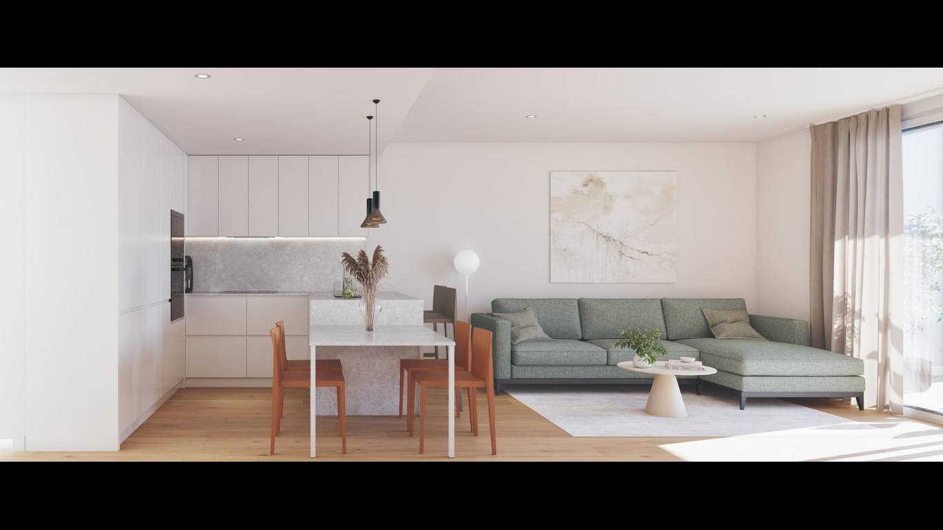 The project offers apartments with either 1 bedroom and 1 bathroom or 2 bedrooms and 2 bathrooms, one of them en suite. Each property features a private terrace of approximately 9 m2 and a bright open plan layout where the fully furnished kitchen with appliances connects seamlessly to the living area.