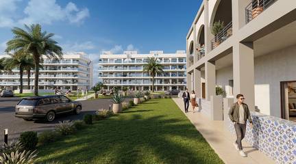 Residential complex consisting of 110 apartments with two or three bedrooms and two bathrooms, situated around a spacious green area with a communal swimming pool.