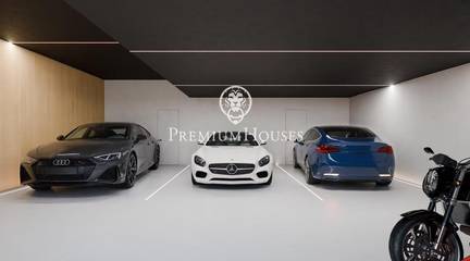 On the first floor, the sleeping area consists of four double bedrooms, all with en-suite bathrooms. All bedrooms have access to a terrace. In the basement, there is a studio, a garage with space for three cars, motorcycles, and bicycles, and a laundry room.