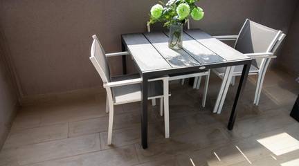 Apartment Features:- Built area: 86 m- Bedrooms: 2 spacious bedrooms- Bathrooms: 2 full bathrooms (one en-suite)- Living room: Spacious living room with integrated French-style kitchen- Furniture: Equipped with all new and modern furniture- Terrace: Enjoy a private terrace of approximately 7 m, ideal for relaxing- Air conditioning (hot and cold)- South facing- On the second floor- Parking space No. 46 (16 m) next to the elevator- Storage room No. 28 (4 m)