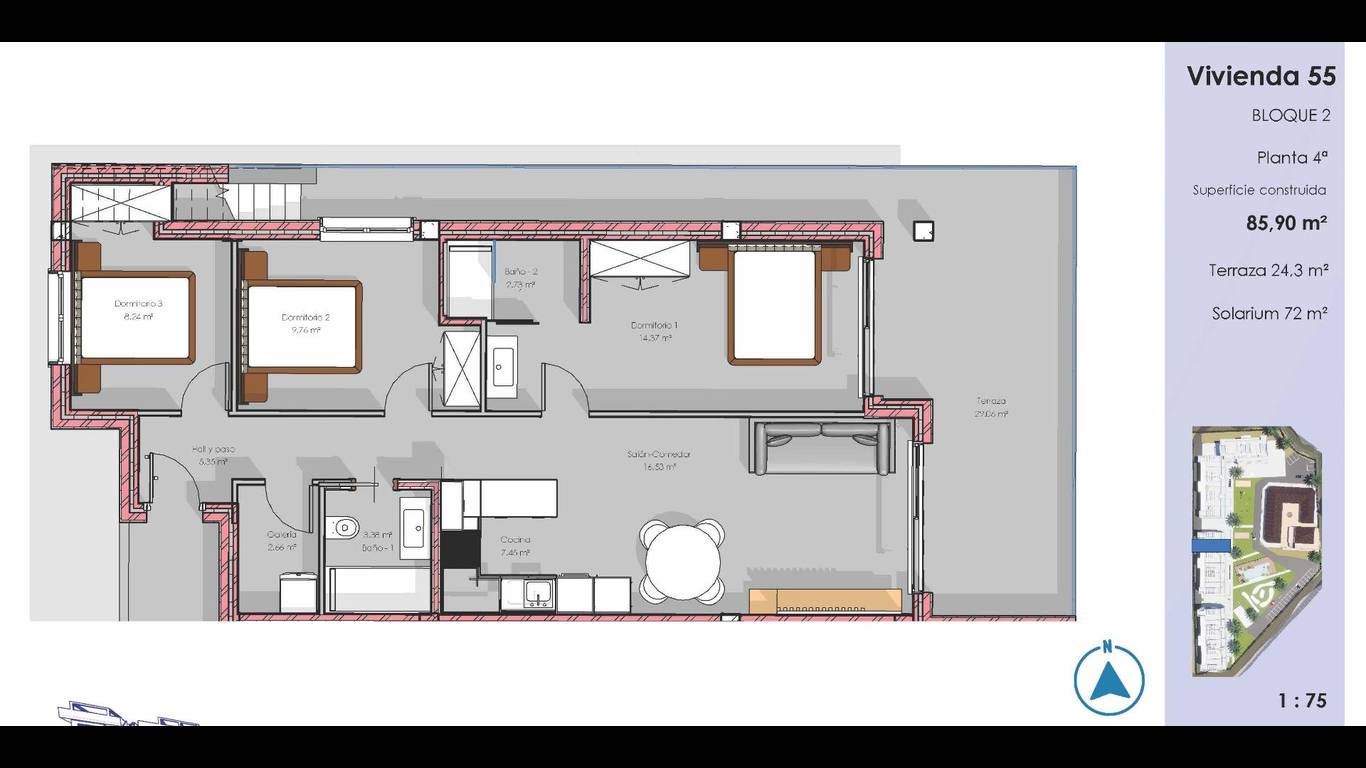 The development offers 2 and 3 bedroom apartments with different layouts to suit every lifestyle. Choose from ground floor properties with private gardens, middle floor apartments with spacious terraces, or penthouses with private solariums ideal for enjoying the Mediterranean climate all year round.