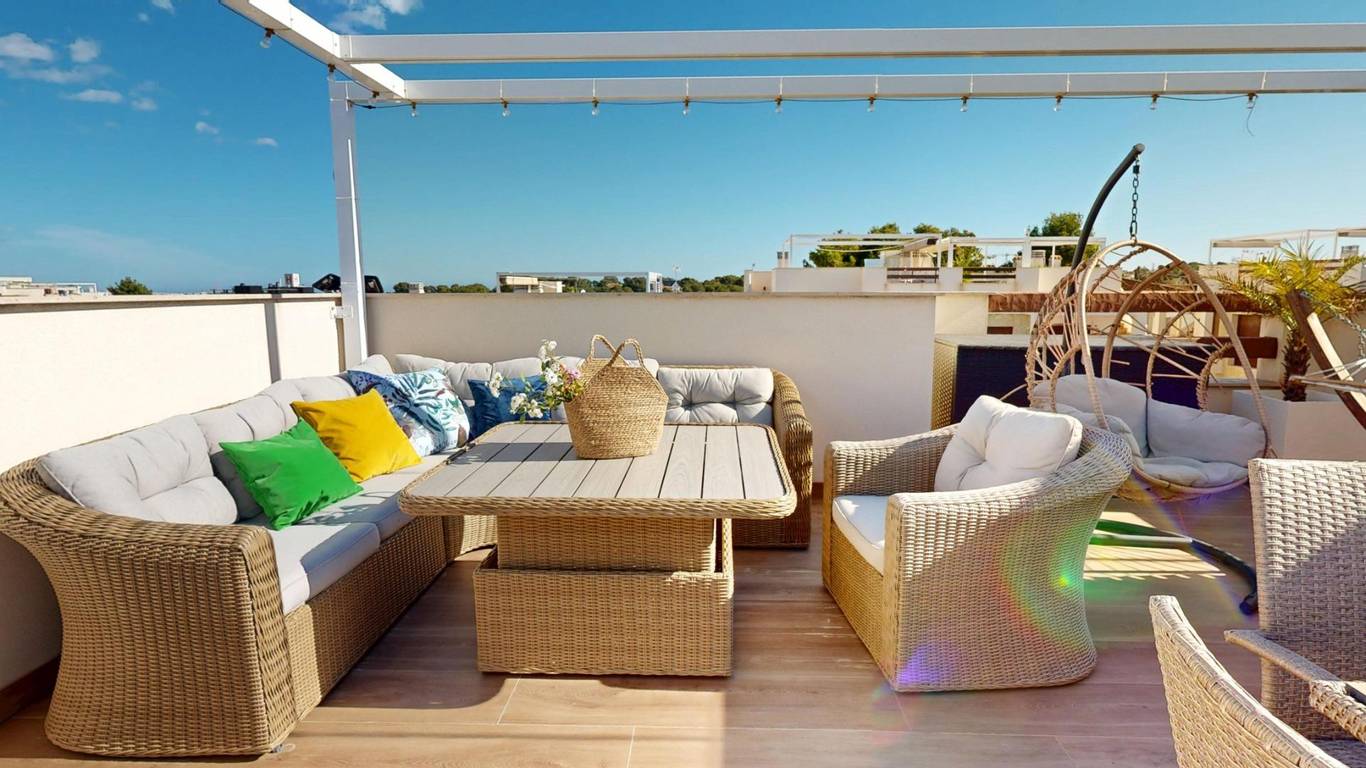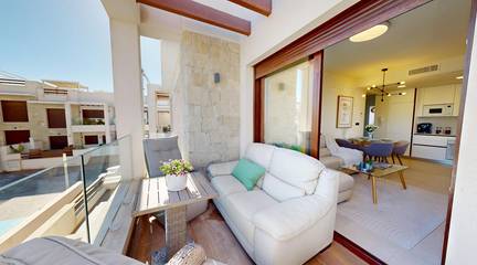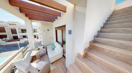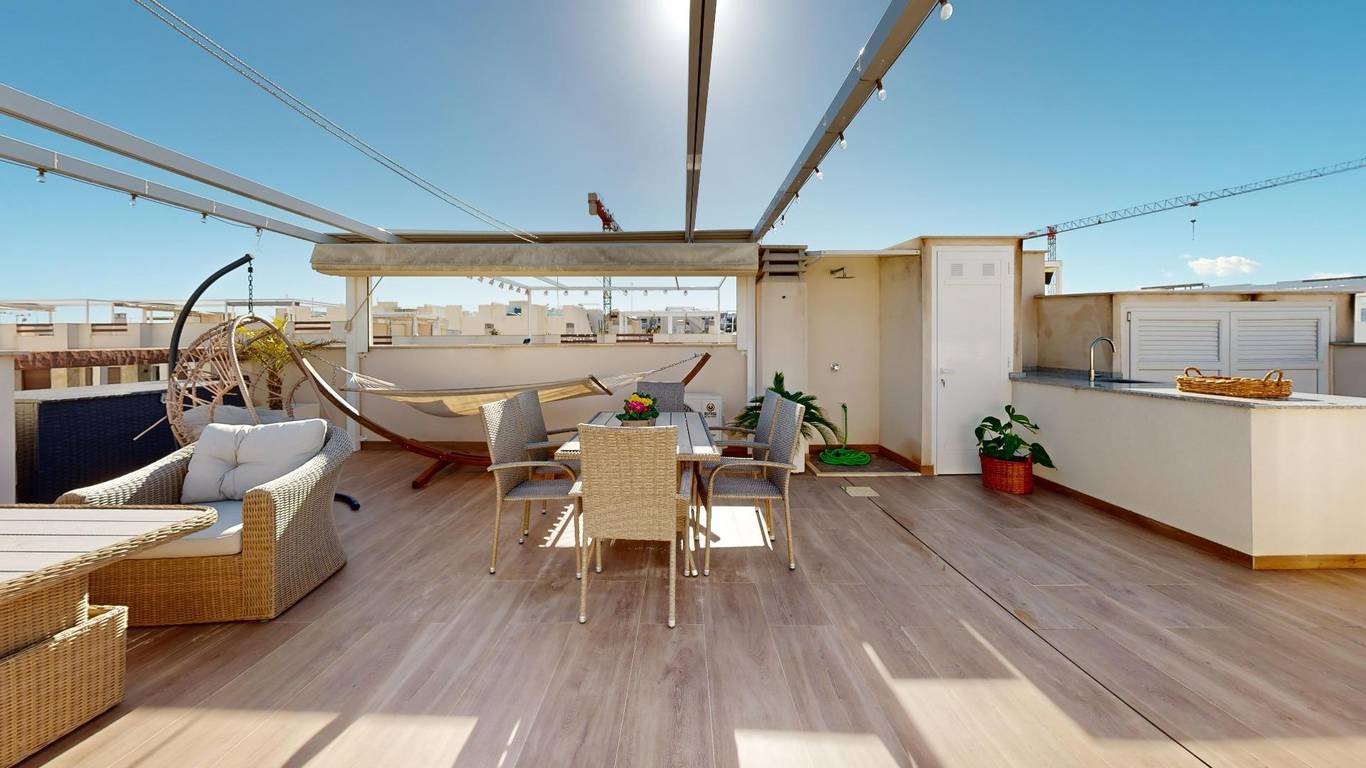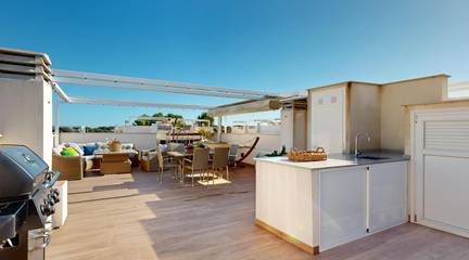 This penthouse in Los Balcones, one of Torrevieja's most sought-after and multicultural areas, combines privacy, light, and quality of life. Its stunning private solarium will be the heart of your home: dinners under the stars, relaxing afternoons, and unforgettable moments with family and friends.