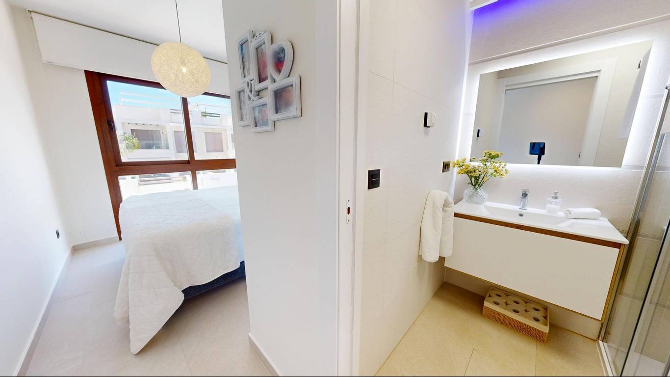 If your favorite sport is tennis or padel, the renowned Torrevieja Tennis Club, with over 40 years of history, is just a 6-minute drive away.- Los Balcones is one of the most established, sought-after, and fastest-growing areas in Torrevieja, perfect for investment or for comfortable living with a high quality of life.- The Habaneras shopping center is only 7 km away, and in the opposite direction, just 6 km away, is La Zenia Boulevard shopping center, considered the largest open-air shopping center in Europe. - Its proximity to the famous Pink Lake, offering a unique natural landscape, and to the Torrevieja Salt Flats, with their picturesque scenery of enormous salt mounds surrounded by purple waters, creates a picturesque landscape that will be etched in your memory forever.- Its proximity to the area's beaches, such as Playa de la Veleta (3.5 km), Zenia and Punta Prima beach, or Acequión and Los Naúfragos beaches, which are just a few minutes away by car.- The Torrevieja hospital is 3 km away.- For those whose passion or need is to travel, Alicante-Elche Airport, with more than 130 destinations, is only 50 km away.