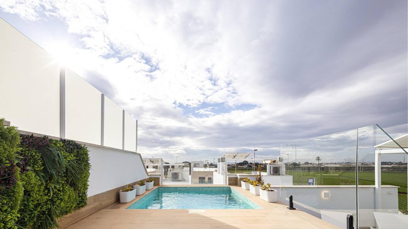 All properties has private gardens and parking space. Plus bungalows on the top floor has private solarium. Torre de la Horadada is located south of Alicante in a beautiful location on the coast. The beautiful beaches of Torre de la Horadada and Mil Palmeras have fine sand beautiful promenade.