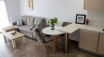 Apartment Features:- Built area: 86 m- Bedrooms: 2 spacious bedrooms- Bathrooms: 2 full bathrooms (one en-suite)- Living room: Spacious living room with integrated French-style kitchen- Furniture: Equipped with all new and modern furniture- Terrace: Enjoy a private terrace of approximately 7 m, ideal for relaxing- Air conditioning (hot and cold)- South facing- On the second floor- Parking space No. 46 (16 m) next to the elevator- Storage room No. 28 (4 m)