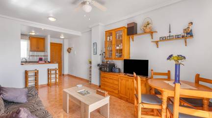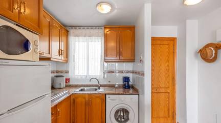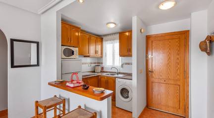 Air conditioning and a cozy fireplace. Independent kitchen and separate laundry room. Great privacy. A giant solarium for your dinners under the stars Top location in Torrevieja, Alicante. Very close to the beach and all amenities. Ideal for year-round living or as a holiday investment.