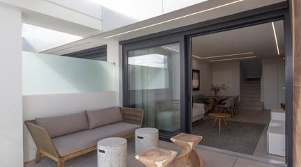 MEDITERRANEAN HOUSING A FEW METERS FROM THE SEA Exclusive complex of Mediterranean construction a few meters from the sea. On the beachfront, in front of LEstanyo beach (7 km from the town center). Apartments and penthouses with two and three bedrooms, all with sea views.