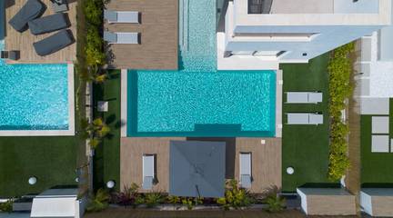 Built area: 126 m over 2 floors solarium3 bedrooms (1 on the ground floor, 2 en-suite upstairs)3 bathrooms. Spacious living room with open-plan designer kitchen. Covered terrace and porch. Chill-out area. Spectacular private pool46 m private solarium with jacuzzi and open views Outdoor oasis.