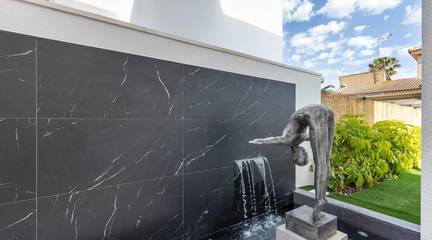 Main Features: Key ready Private pool with heat pump and waterfall feature Fully integrated smart home system control everything from your phone Underfloor heating in bathrooms Central air conditioning High-end Bosch appliances Hot water via aerothermal system Electric shutters and LED lighting in the kitchen, living room and garden Luxury finishes: black porcelain marble, solid wood wardrobes, exterior thermal insulation paint, and premium fiberglass windows Decorative lake with waterfall at the entrance (yes, an actual lake) Layout:Plot size: 444 m.