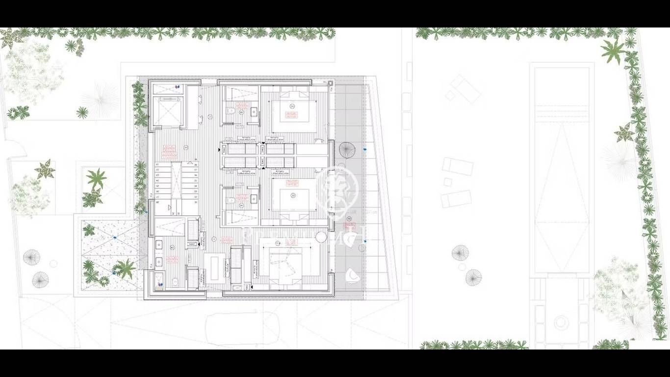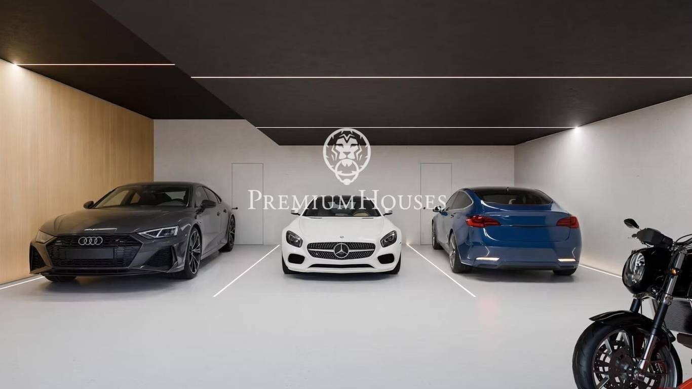 On the first floor, the sleeping area consists of four double bedrooms, all with en-suite bathrooms. All bedrooms have access to a terrace. In the basement, there is a studio, a garage with space for three cars, motorcycles, and bicycles, and a laundry room.