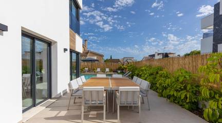 Just minutes away from the best beaches on the Costa Blanca, this villa sits in a quiet and privileged residential area, with all amenities within easy reach: 3 minutes from Habaneras shopping centre Close to supermarkets and local shops A short drive to the beach Near the water park and skate park All the peace and privacy you want, with everything just around the corner Smart tech meets lifestyle.