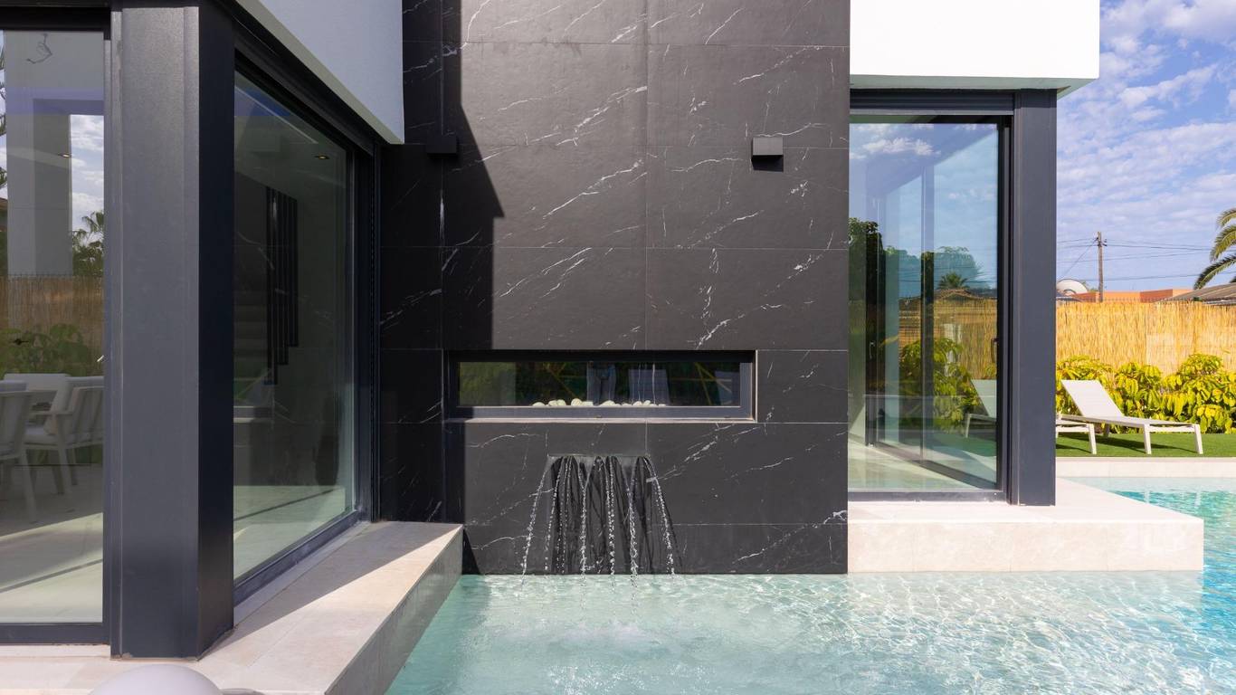 Main Features: Key ready Private pool with heat pump and waterfall feature Fully integrated smart home system control everything from your phone Underfloor heating in bathrooms Central air conditioning High-end Bosch appliances Hot water via aerothermal system Electric shutters and LED lighting in the kitchen, living room and garden Luxury finishes: black porcelain marble, solid wood wardrobes, exterior thermal insulation paint, and premium fiberglass windows Decorative lake with waterfall at the entrance (yes, an actual lake) Layout:Plot size: 444 m.