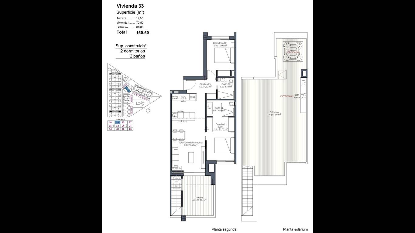 The apartments are built with modern materials and high quality specifications designed for comfort and style. Fully equipped kitchen with white glass finish appliances. Bathrooms with vanity units, shower screens and backlit mirrors. Motorized window shutters. Basic lighting package.