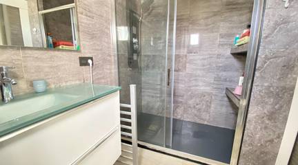 We present a magnificent detached villa set on a generous 800 m plot, located in a prime area just one kilometer from the sea. The property has undergone several recent improvements, including exterior painting and updated furnishings (not shown in the photos).