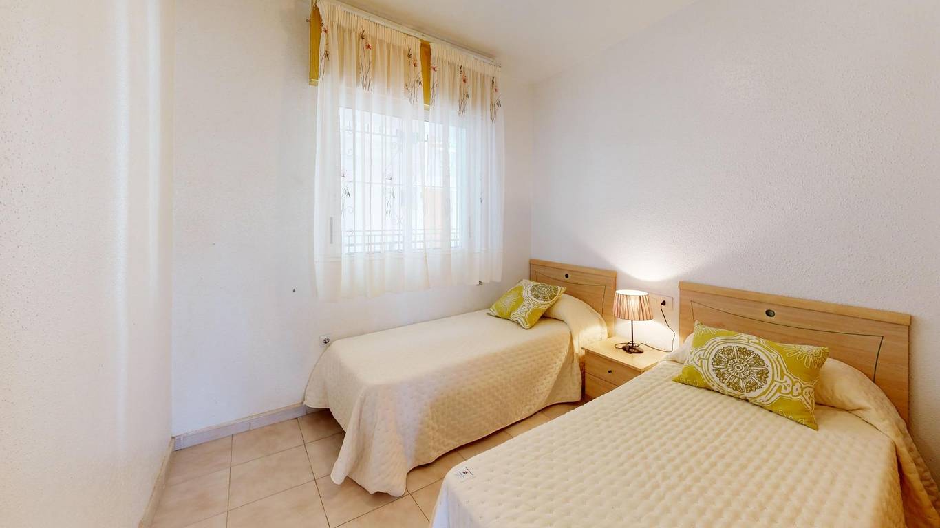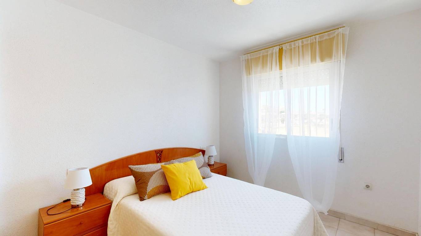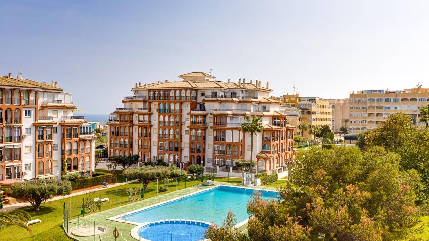 Here is everything you need to know about the property: 56m2 flat 2 bedrooms 1 bathroom Communal swimming pool and garden areas Unobstructed views Close to the beaches of La Mata and Cabo Cervera Quiet and well-connected location in Torrevieja Orientation: East IBI: 100.63 per year Community fees: 35 per month.