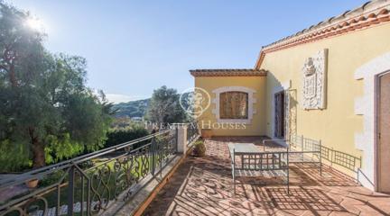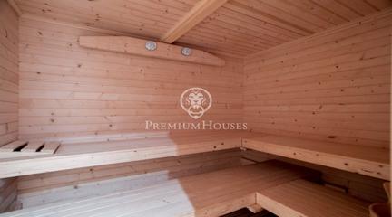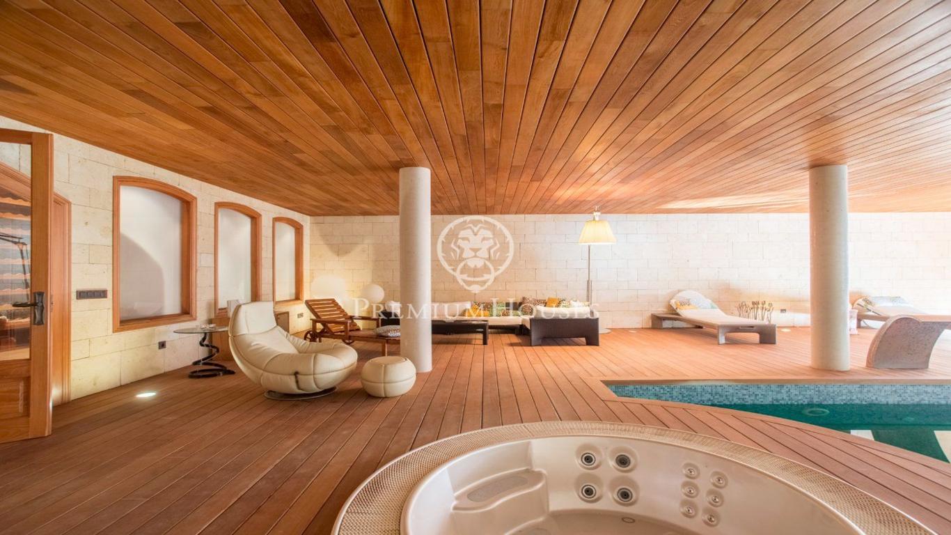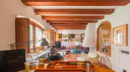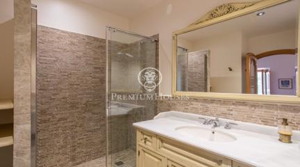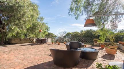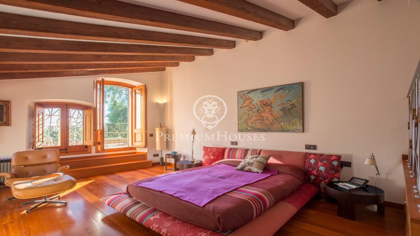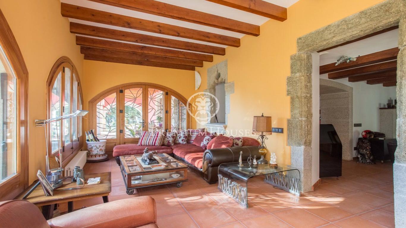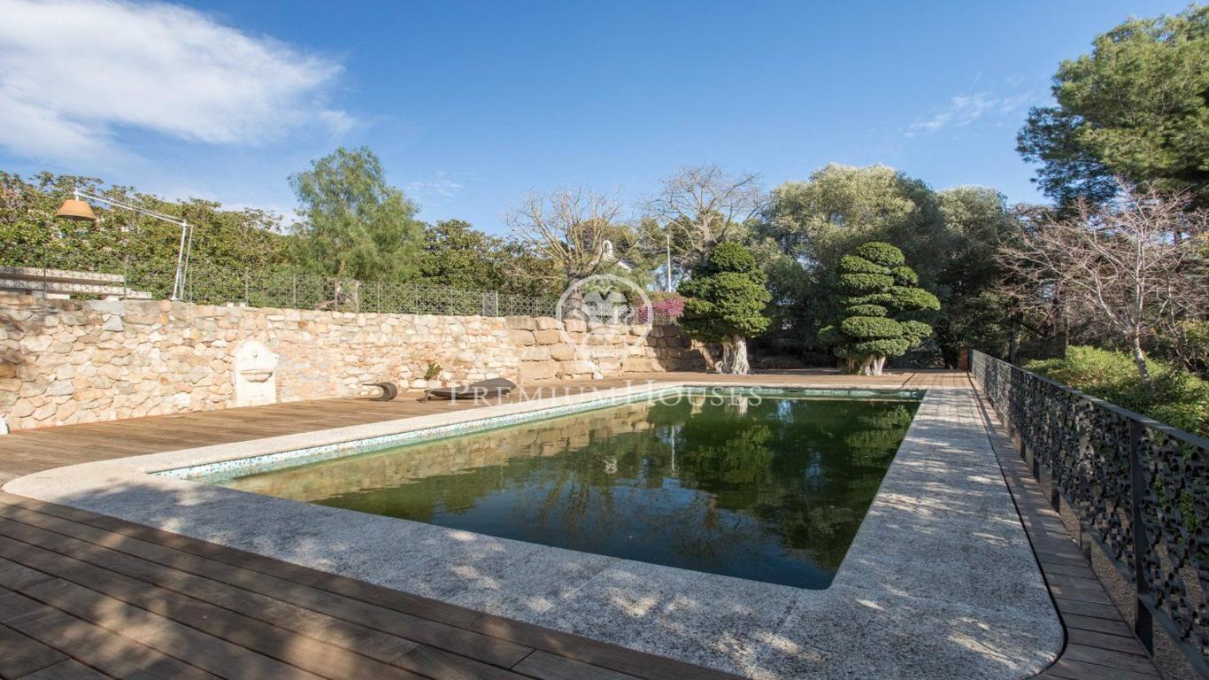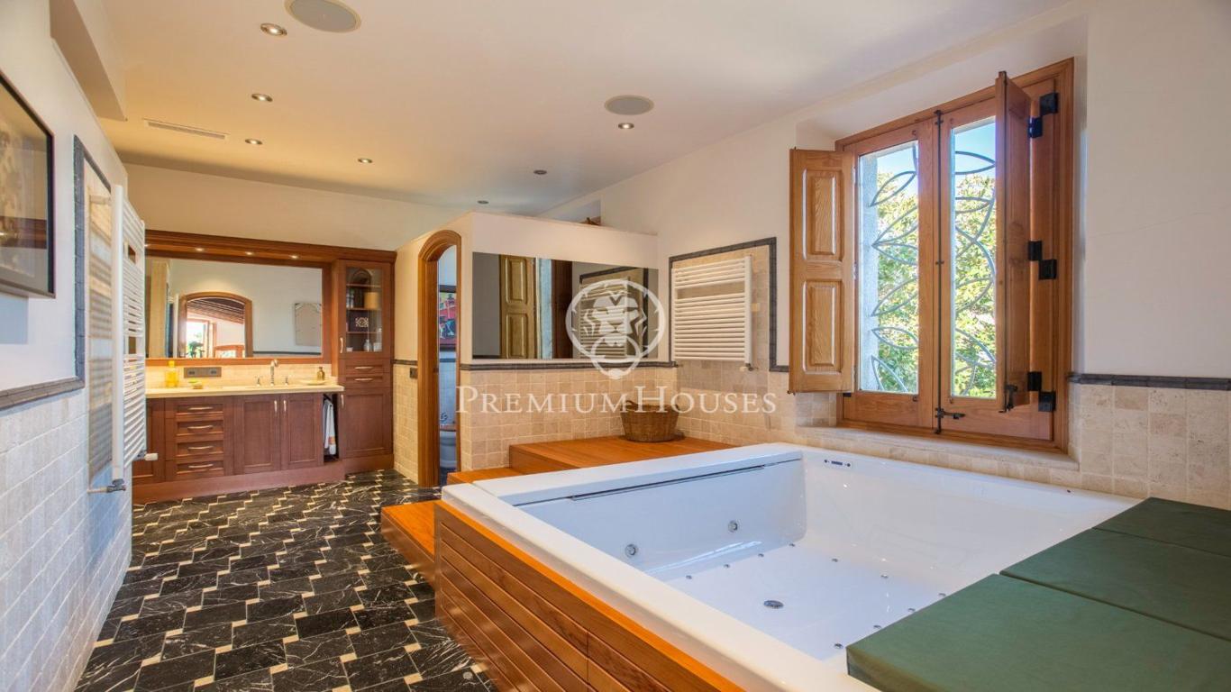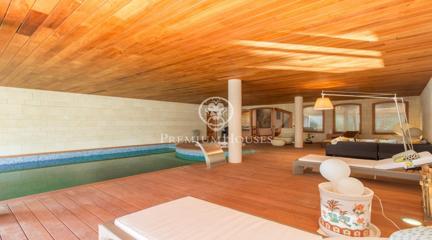 Esta espectacular y lujosa villa está situada en Cabrera de Mar, tranquila población del Maresme, bien comunicada con acceso rápido a la autopista, a tan sólo 25 minutos del centro de Barcelona, a 10 minutos de la ciudad de Mataró y a sus playas, puerto deportivo, centros comerciales, restaurantes, colegios y demás servicios. Desde aquí al centro de la población, a solo 10 minutos caminando.Sobre una parcela de 5.915 m2, se levanta esta magnífica y muy exclusiva construcción de más de 1.400 m2.El inmenso y exótico jardín con árboles de distintas especies traídos desde Italia y Sudamérica, como olivos, ceibas, encinas, y una variada flora mediterránea, proporciona rincones llenos de encanto y privacidad que lo hace único en la zona cuenta, además, con un pequeño lago artificial, piscina, zona chill out, terrazas, zona de barbacoa, una zona de huerto y árboles frutales, etc.En esta zona exterior, encontramos unas construcciones anexas con una superficie total construida de 384m2, entre la que destaca un moderno garaje de 5 puertas, con una superficie construida de 213m2 y con capacidad para 10 vehículos, así como una casa de invitados y una casa de servicio con varias dependencias en cada una de estas.Entramos a la vivienda, esta tiene una superficie total construida de 1.098m2, distribuidos en 3 plantas que están comunicadas entre si mediante ascensor. La planta principal consta de un recibidor con chimenea, un comedor que comunica con una amplia cocina independiente, una despensa, zona de lavandería, un baño de cortesía, una sala de instalaciones, un despacho con chimenea y un salón de dos ambientes.La planta primera corresponde a la zona de noche y cuenta con tres espaciosos dormitorios en suite con baño privado, vestidor en dos de estos y todos con salida directa a una gran terraza donde se disfruta de excelentes vistas a la propiedad, paisaje y mar. La suite principal goza de un gran baño con jacuzzi y un elegante vestidor. Uno de los dormitorios posee un salón propio y chimenea.La planta inferior, con salida directa a jardín, está dedicada a la zona de ocio, descanso y wellness. Dispone de una gran piscina climatizada, sala de juegos con mesa de billar, barra de bar, una bodega de madera, zona de spa con jacuzzi, sauna, una habitación doble y vestuarios.Destaca la elegancia y los acabados con materiales de primera en todas las estancias de esta lujosa vivienda.Se trata, sin duda, de una propiedad muy exclusiva y singular que no le dejará indiferente, contáctenos y solicite más información, programemos una visita.