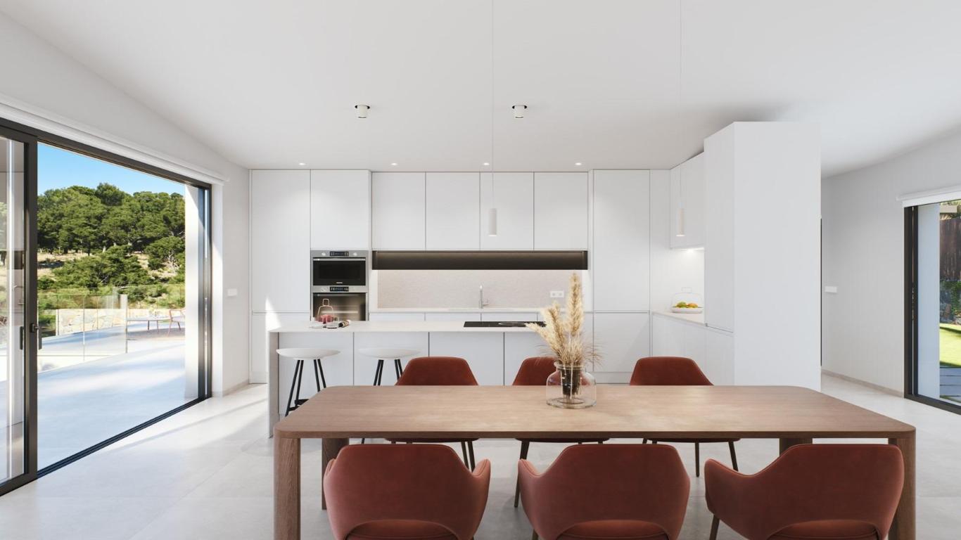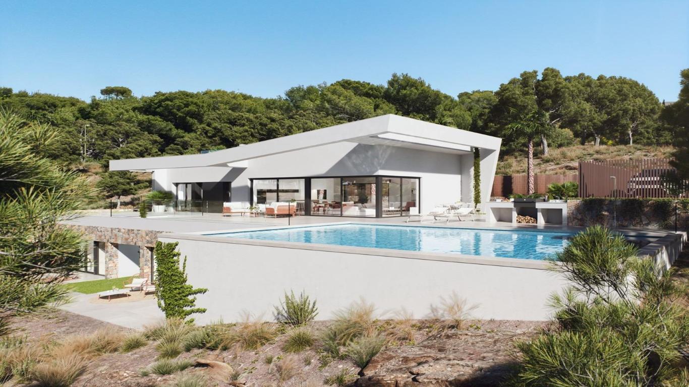 GS SPANISH PROPERTIES presents these exclusive villas located in a prestigious, exclusive location, set in the heart of a gorgeous area, a 10 minute drive from the coast. There is a golf course within the development and the roads wind amidst the lovely scenery of pine forests and the lemon and orange groves. This community has different types of villas adapted to its orography.The villa is situated on a 1185m2 plot and is distributed over two floors. The upper floor has a large living-dining room with double-glazed sliding doors that open directly onto the terrace with a private pool. It also has an open concept kitchen with a central island, a bedroom with an en-suite bathroom and a toilet. The lower floor has 3 more bedrooms and 2 bathrooms, one of which is en-suite to the master bedroom. There is also a utility room and a storage room on this floor. The house also has a roof top private solarium accessible from external stairs.Features included in the price are: a video intercom, a home automation system, an air conditioning, electric shutters in the bedrooms, an underfloor heating in the bathrooms, interior and exterior LED lighting, electrical appliances in the kitchen, a swimming pool with salt water system and landscaped garden.This is a gated community which is manned 24 hour with patrolling security guards and it is one of the top 50 Golf Courses in Europe (voted by leading Golf Magazines). This is Low Density urbanization, built up of several small communities with green areas where nature prevails, located approximately 10 km from the sea. There is a sports centre with fitness, tennis and paddle courses, but there is also a beautiful walking path that goes all along the resort. There are several good private bilingual schools in less than 30 minutes drive. The resort is situated in less than 50 minutes drive from both Alicante and Corvera/ Murcia Airport. The resort is exclusively for residents which makes it a very private area.GS SPANISH PROPERTIES is a successful family run real estate agency established since 1999. We have the BIGGEST selection of new build property and are one of the few estate agencies which has ALL new developments. Dont be fooled by lower price tactics that some agents use, we are constantly updating our prices from the developers to ensure they reflect the most up to date price. Our professional team has a wealth of experience and we pride ourselves in being honest and trustworthy, creating a friendly no pressure environment for all our clients. All members of our team have lived on the Costa Blanca for more than 20 years so are very passionate about the area and knowledgeable on all aspects of living here. From the point of first contact we offer you a quality service taking care of you throughout the whole buying and aftersales process.