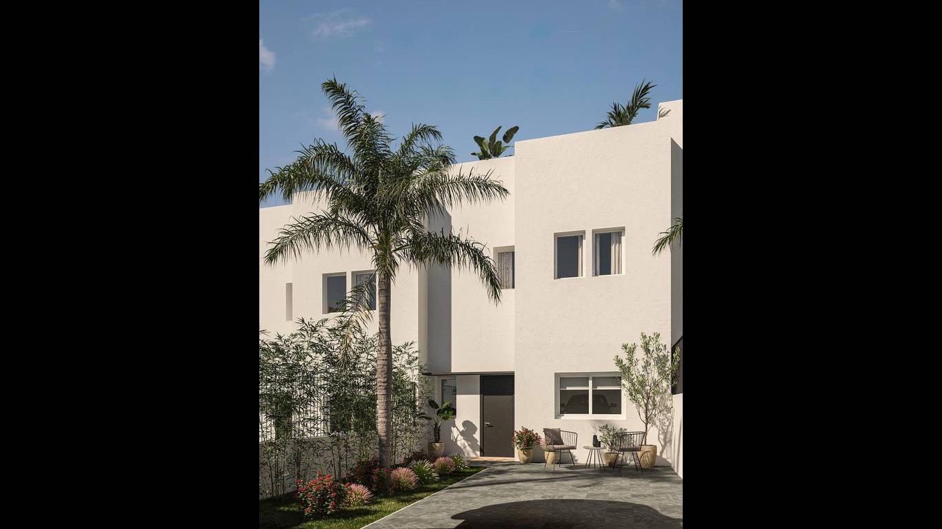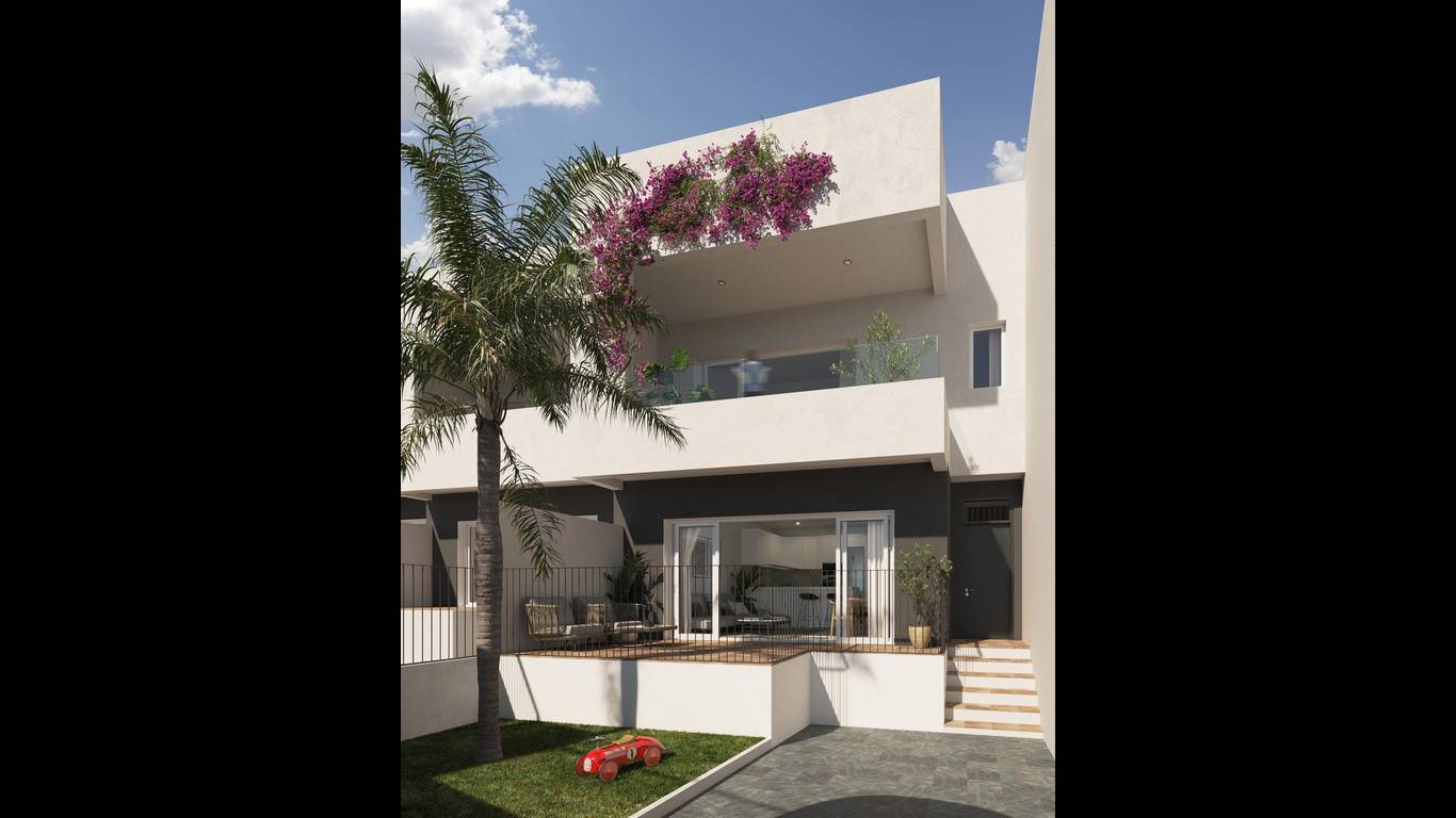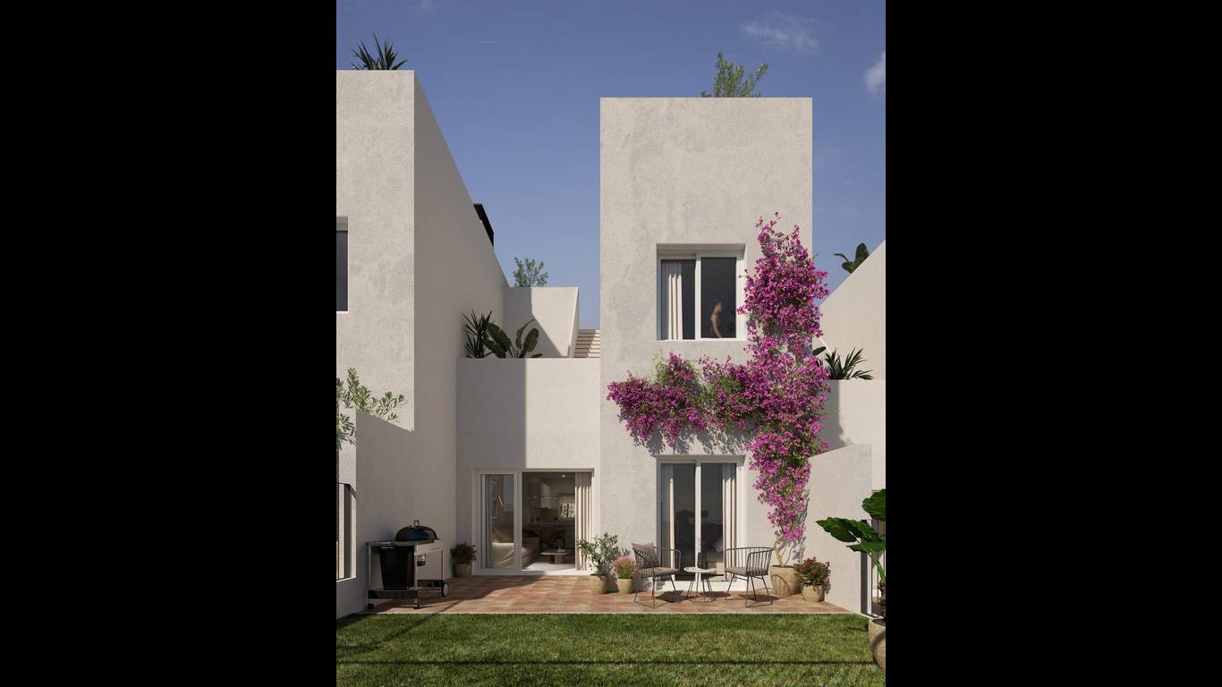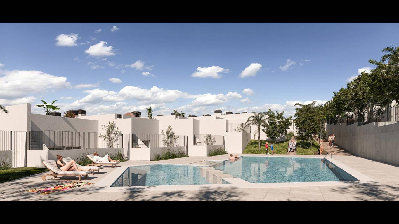 NEW BUILD SEMI-DETACHED VILLAS IN MONFORTE DEL CIDNew Build development of 54 townhouses and semi-detached villas in Monforte del Cid. Spacious properties with 3 bedrooms, 2 bathrooms and 1 toilet. All the properties have a private garden on the plot, a solarium area and a private garage.The homes have full aerothermics, a renewable energy system that takes advantage of external environmental energy.Each property has been meticulously designed to provide you with maximum comfort and functionality. In addition, the spacious interiors blend perfectly with the outdoor areas. Imagine relaxing on your own terrace while admiring the golf course and enjoying the tranquillity you deserve.Residents of this development will have exclusive access to a wide range of first class amenities. Enjoy refreshing dips in the communal swimming pool, keep your body in shape in the fully-equipped gymnasium, and enjoy a refreshing swim.Immerse yourself in a luxury lifestyle and enjoy the serenity that only Alenda Golf can offer you. These modern and stylish bungalows are strategically located in a stunning natural setting, surrounded by lush vegetation and with panoramic views of the golf course.Private urbanisation close to the main cities of the province of Alicante, 15 minutes drive from Elche and Alicante, as well as the airport and the best beaches. Development is located in a peaceful setting close to the Alenda Golf Course in Monforte del Cid.