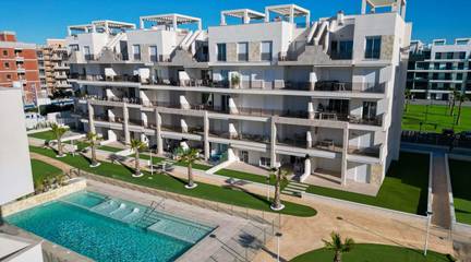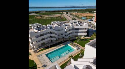 NEW BUILD RESIDENTIAL IN EL RASO, GUARDAMAR DEL SEGURANew Build private residential complex of apartments in El Raso, Guardamar del Segura. Complex consisting of 135 homes with 2 or 3 bedrooms in blocks of 3 or 5 floors plus solarium, designed in a minimalist way and with high quality standards, its modern architecture harmonises with our large open spaces, nature and swimming pools, offering a unique and peaceful atmosphere. Beautiful residential complexes, including a glassed-in GYM-Spa area with views of green areas, swimming pools and from its terrace overlooking the salt lagoon of La Mata, paddle tennis court, etc. Parking space included in the price.Development is located on a unique and unrepeatable plot, bordering the natural landscape of the salt lagoon, enjoy its biodiversity and unique environment, in El Raso de Guardamar del Segura, with all kinds of services and amenities and close to the best beaches of the Mediterranean. At the same time, thanks to the proximity of El Moncayo beach, you will be able to go for a bike ride and enjoy the best climate of the Costa Blanca. Additionally and thanks to the five levels of some of the blocks that make up the residential, all of them facing south, we include in our luxury penthouses, fully equipped kitchen on the solarium, outdoor shower (hot/cold water), and jacuzzi area, to complete the unique experience of living in front of a unique and unrepeatable natural environment. El Raso is a part of Guardamar del Segura.Guardamar del Segura is a town located on the Costa Blanca South. With its 11 kilometres of natural beach and its large pine forest.Guardamar del Segura has a large port with activities throughout the year, it has a large sports centre with paddle tennis, tennis, soccer and a large heated swimming pool that works all year round. It also has a library where there is free wifi and computers.Guardamar del Segura is only 20km away from the Alicante - Elche (El Altet) airport, where there are many flights every day with connections to the main European cities, due to the demand for tourists on the Costa Blanca.