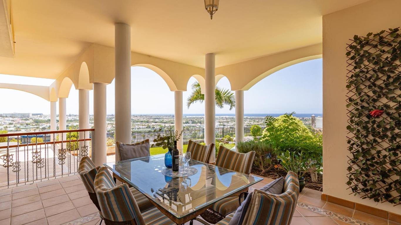 The villa rises on a plot of 1080 m2, surrounded by an exquisitely well-tended garden and spacious terraces that invite you to enjoy the sun and privileged views. The oriental-inspired porch with its arches is the perfect place to enjoy the beauty of the surroundings and spend time outdoors. And for those seeking an oasis of tranquillity and a private pool, await refreshing moments of relaxation under the warm sun.