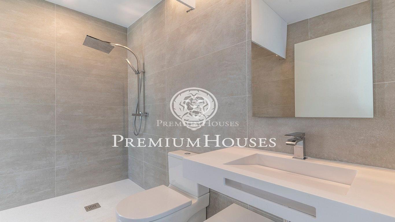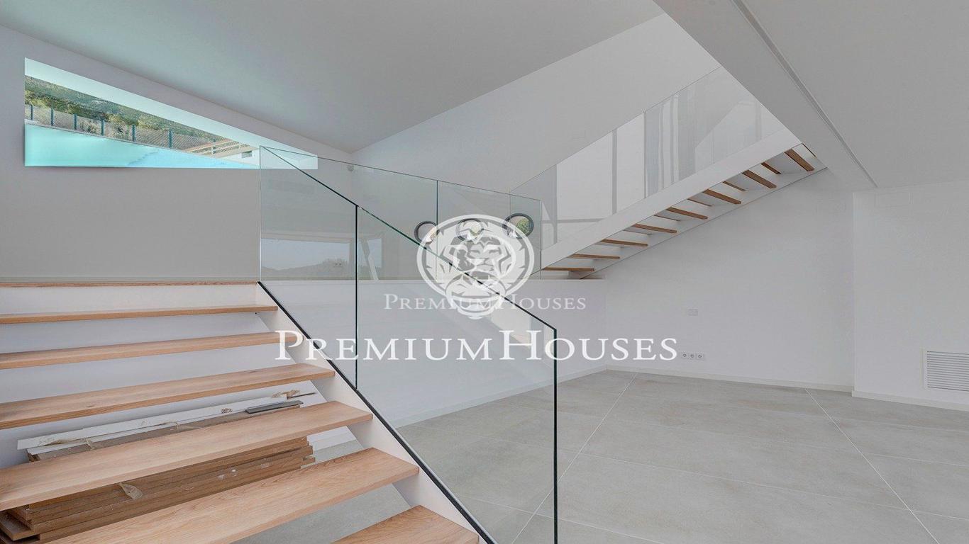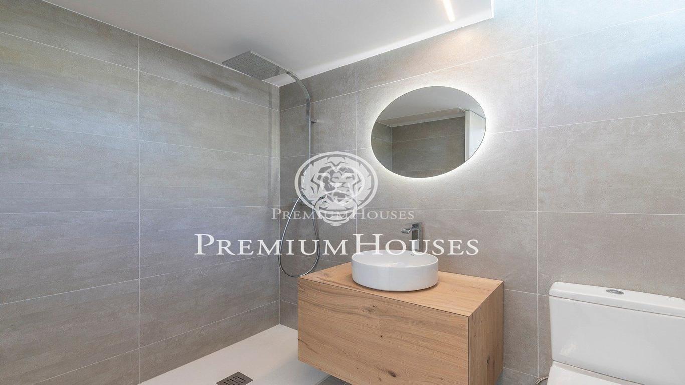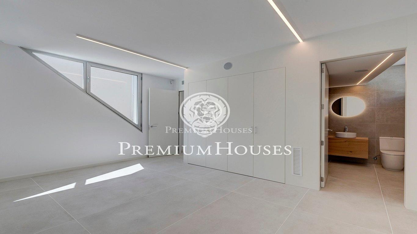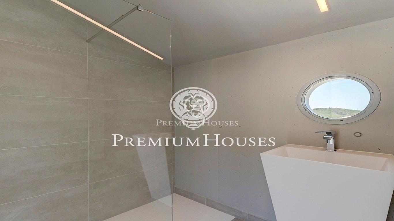 Spectacular home by renowned architect that is difficult to do justice to in the photographs. Open through large windows and glass walls to magnificent views of the sea and the golf course, with the latest advances in home automation and energy efficiency, with very high ceilings and large spaces, it was designed for a family looking for a modern home, of great privacy and tranquility and at the same time, close to the center of Sitges. From the main stone entrance there is access to a parking with capacity for at least three cars, washing-drying area and a room for the house machinery: aerothermal heating, water depurtion, water softener and swimming pool machines. Your access to the first floor with an elevator or through the stairs on the left side of the house, where there is a large and bright living room at two heights, which delights lovers of design and good taste, by the exquisite project in which the pool can be seen from the living room as it was a picture. The fully equipped kitchen with unbeatable sea views, as well as the living room, which have access to a terrace that has white aluminum enclosure system to obtain the greatest privacy. There is a bedroom with a built-in closet, with a full bathroom with shower. On the second floor, we can find 3 large bedrooms (one of them suite), all with fitted wardrobes. The suite has a full bathroom with shower convertible into a bathtub and the other two share a bathroom with shower. All rooms have terraces with magnificent views. The house is finished with high quality materials in bathrooms, kitchen, and exterior enclosure. The property has a private pool surrounded by terrain at different heights to create an incredible landscaping project, in the upper part it has two changing rooms with bathrooms, one with a shower and a designer washbasin and the other with a toilet and washbasin design. The exclusive and calm urbanization Can Girona, is located next to the Terramar golf course and just a few minutes from the center of Sitges. It is also very closed to prestigious international schools.