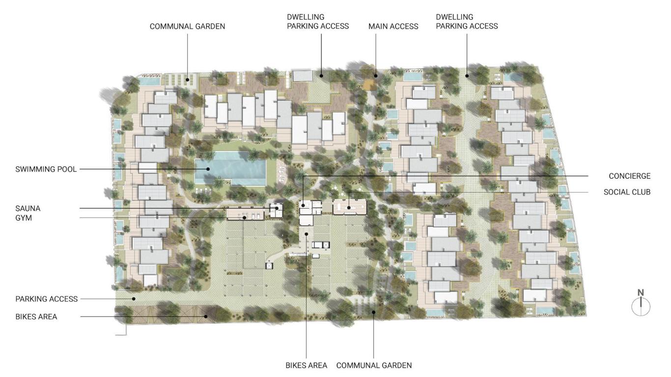 NEW BUILD RESIDENTIAL IN EL VERGELNew Build residential complex of 65 modern 2 bedrooms apartments and 2 and 3 bedrooms townhouses in El Vergel.Following the sustainability and energy efficiency approach of residential complex the designers have created a project where terraced single-family homes predominate. This residential concept provides an environment where communal spaces are accessible to all residents, while each home has its own private spaces, both indoors and outdoors, for daily enjoyment.The communal areas breathe a natural and welcoming atmosphere. As you explore its different areas, you will find perfect spaces for walking, sports, and, above all, for cycling.Experience a unique lifestyle in residential community, where every detail is designed for your comfort and enjoyment. Dive into the refreshing pool, train in the gym, relax in the sauna, and share unforgettable moments with family and friends in the social club.Equipment:Swimming poolGYMSaunaGardensSocial ClubBeach pointSustainable energyResidential complex is a communal area that will allow you to enjoy La Almadraba beach in its purest essence. Residents will have access to this beachfront space where they can organise their own events, park their bicycles, store nautical equipment, and take a shower or dip in the pool after enjoying the sea.A gateway to the sea on the shores of La Almadraba beach in Denia.