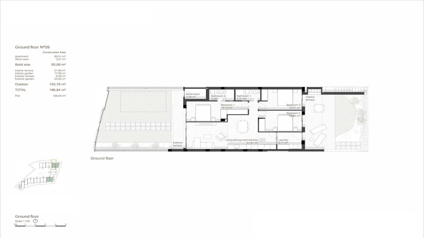 Bedrooms: 3, Bathrooms: 2 Total area: 95 m2 Living area: 80 m2 Plot: 185 m2