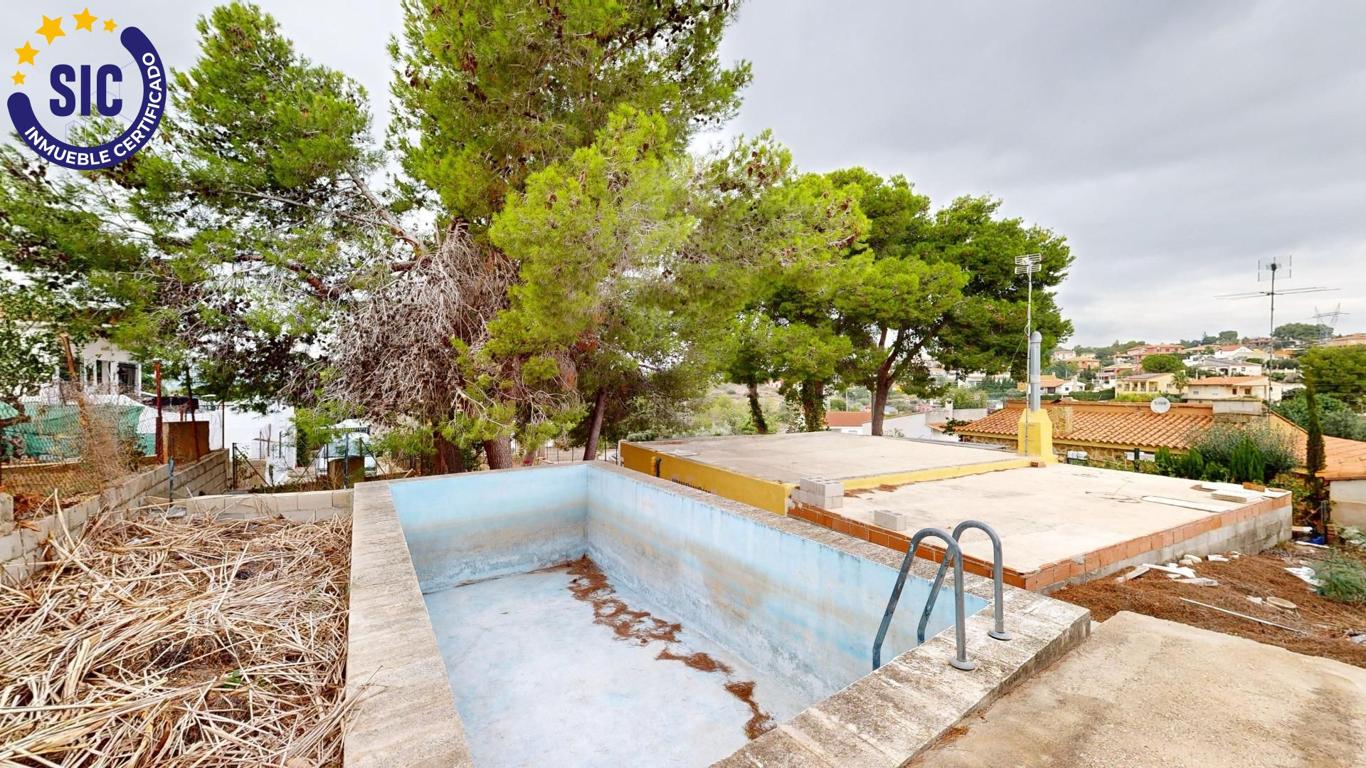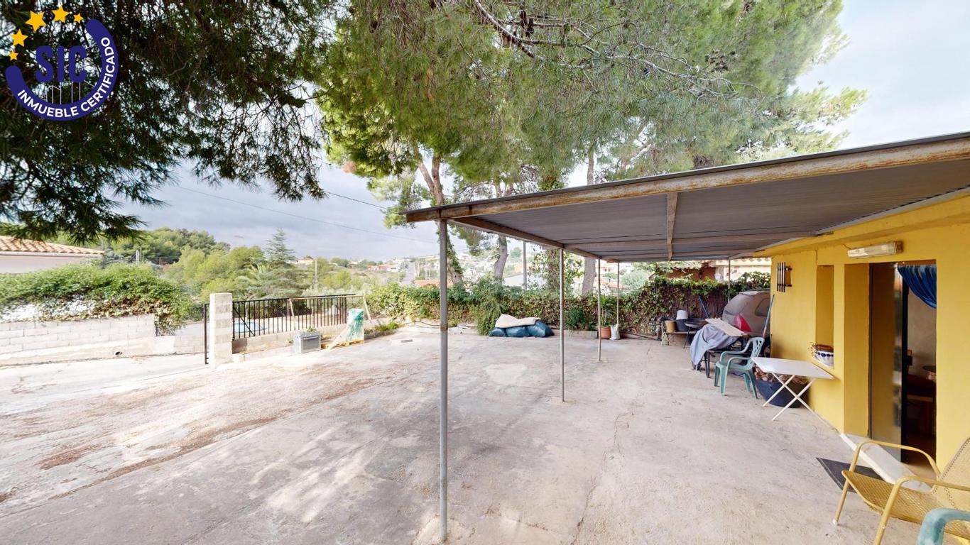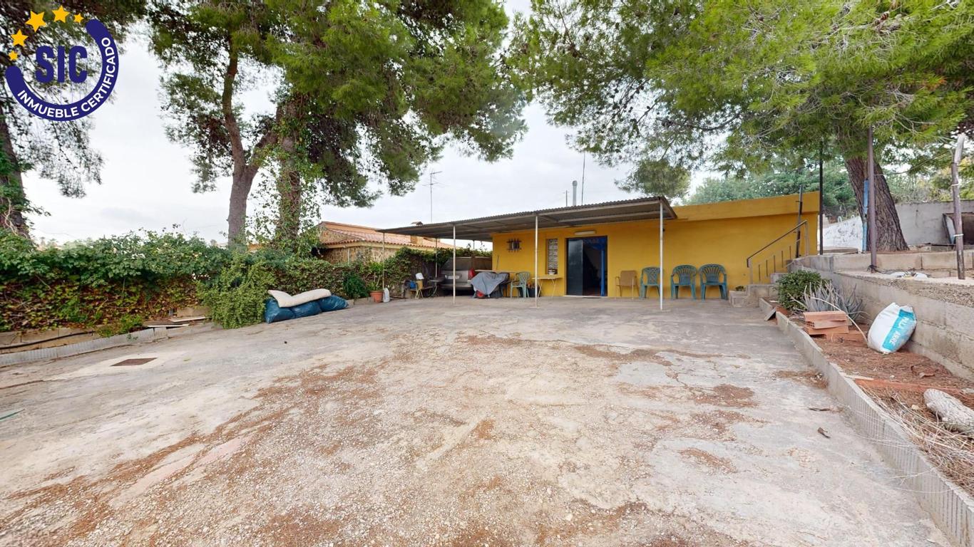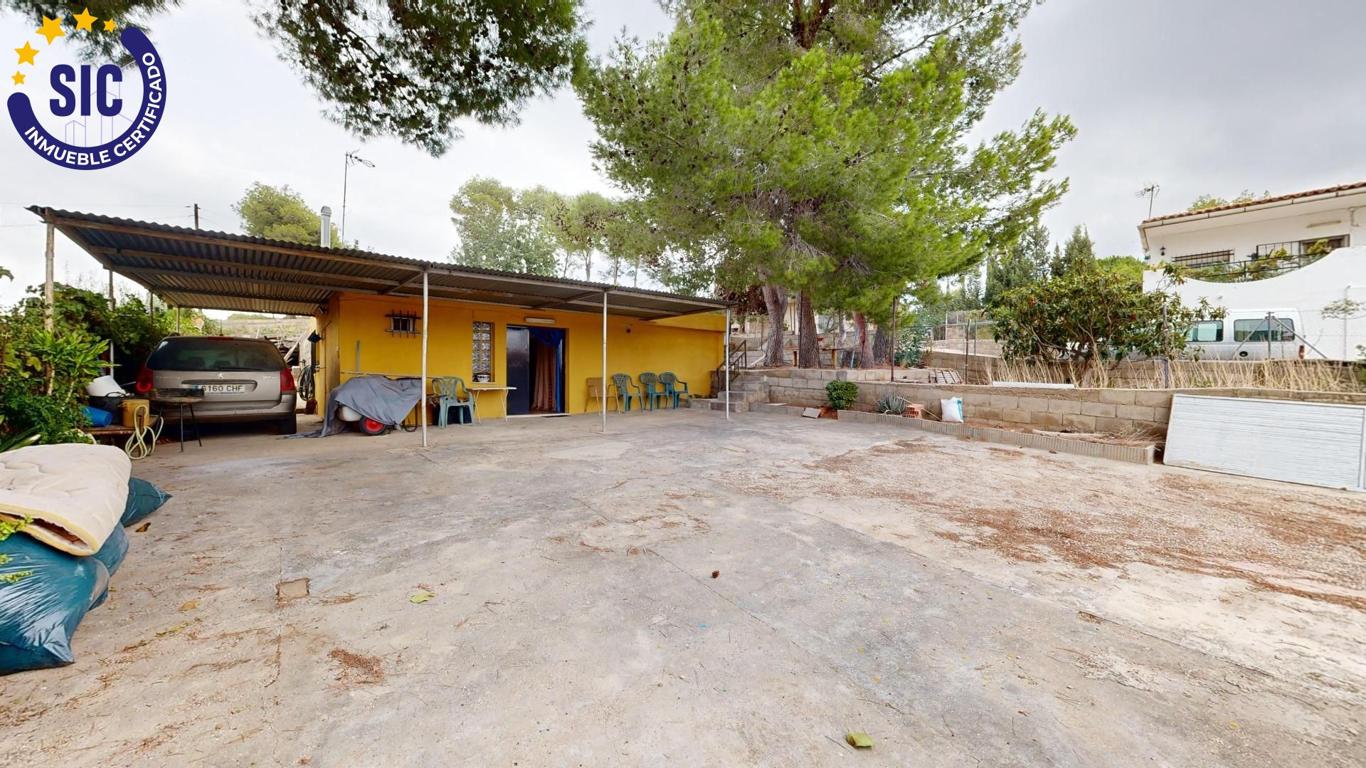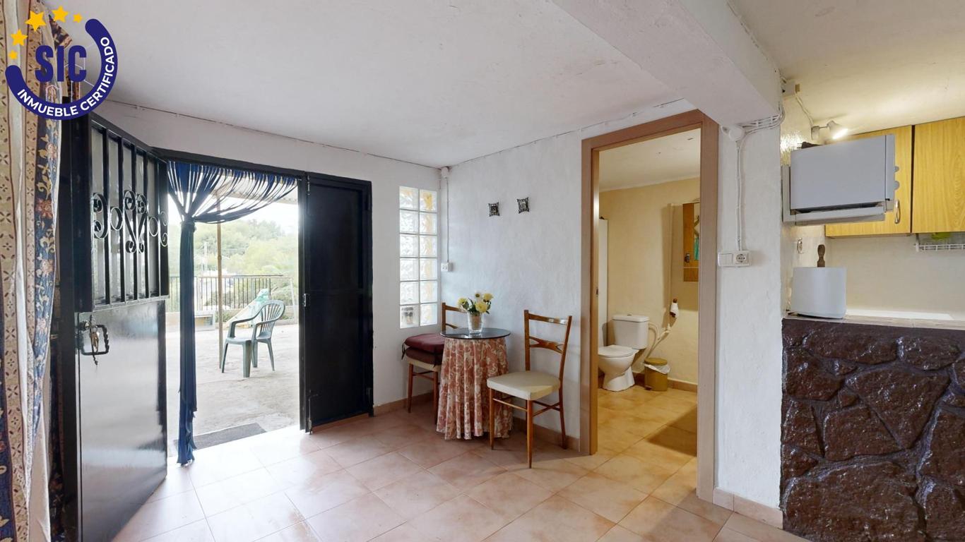 How many times have you wanted a little house to spend the day or the weekend? Well, we have the house you are looking for in the Los Lagos de Alginet urbanization. It is a house on rustic land, with a 536m2 plot, with a swimming pool without a purifier, a large garden distributed in heights, a parking area, a front porch, a terrace and a paella pit. The house has 70m2, it is a loft with a kitchen open to the living room with a fireplace, a room also integrated into the living room and a toilet. It is ideal for spending the day or a weekend, making yourself a paella or a barbecue. The wood-burning fireplace gives it this rustic touch and warmth of a home, ideal for disconnecting on winter days. The house has aluminum windows, ceramic floors, solid wood door, sheet metal entrance door, fireplace, cesspool, electric light, urbanization water (not drinkable) from a cistern and a butane gas stove. It is not suitable for living all year round as it does not have a shower or a water heater. There is fibre optic internet in the development. The house has many possibilities for renovation, as you can shorten the huge living room to make bedrooms, renovate the kitchen and enlarge the bathroom if you wanted, you can also leave it as is to use it occasionally, the choice is yours. The town of Alginet is a 5-minute drive from the house, with supermarkets, schools, parks, a metro stop and several road exits to access Valencia. With neighbours who live all year round. Don't miss out on this unique opportunity. Purchase and real estate expenses not included in the price. Furniture and appliances not included in the price.