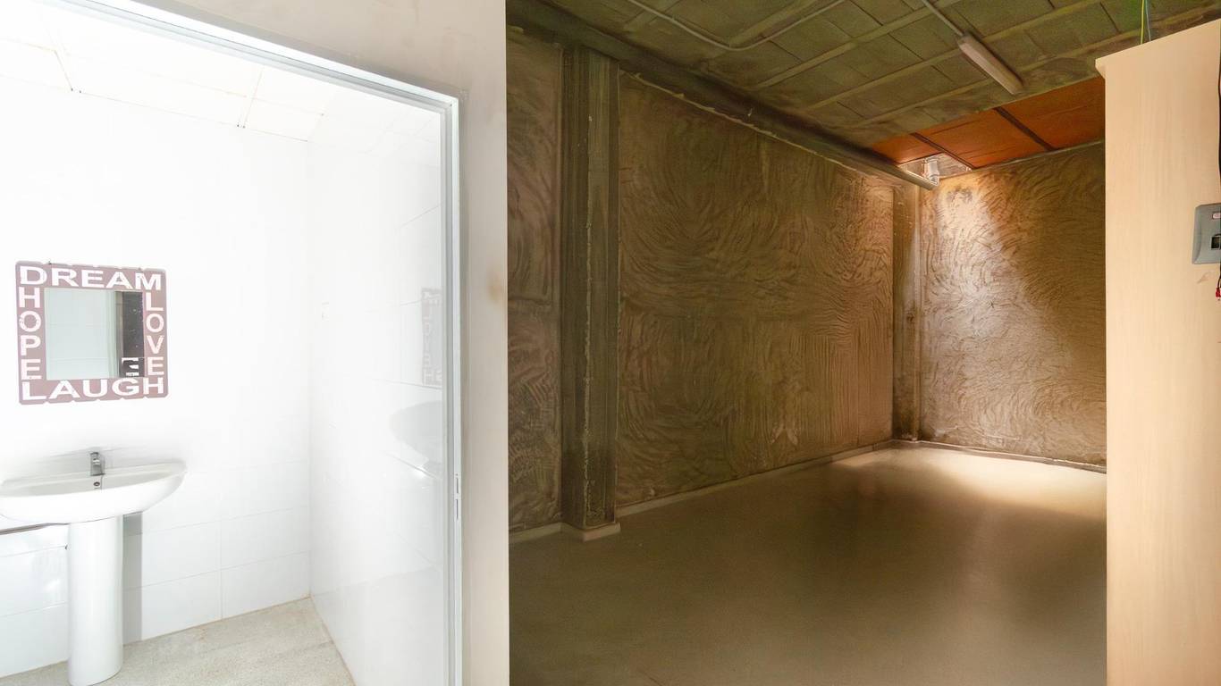 - Separación de pladur, distinguiendo zona pública de almacén con una claraboya en el interior.