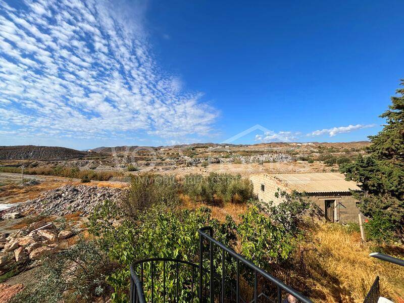 A large, fantastic 2 bed, 2 bath two storey Villa of 177m2 with a private sun terrace with a 1 bed studio apartment and a large underbuid of 93m2 on a plot of 1882m2 with outbuildings on the edge of the village of La Perulera, Huercal-Overa.