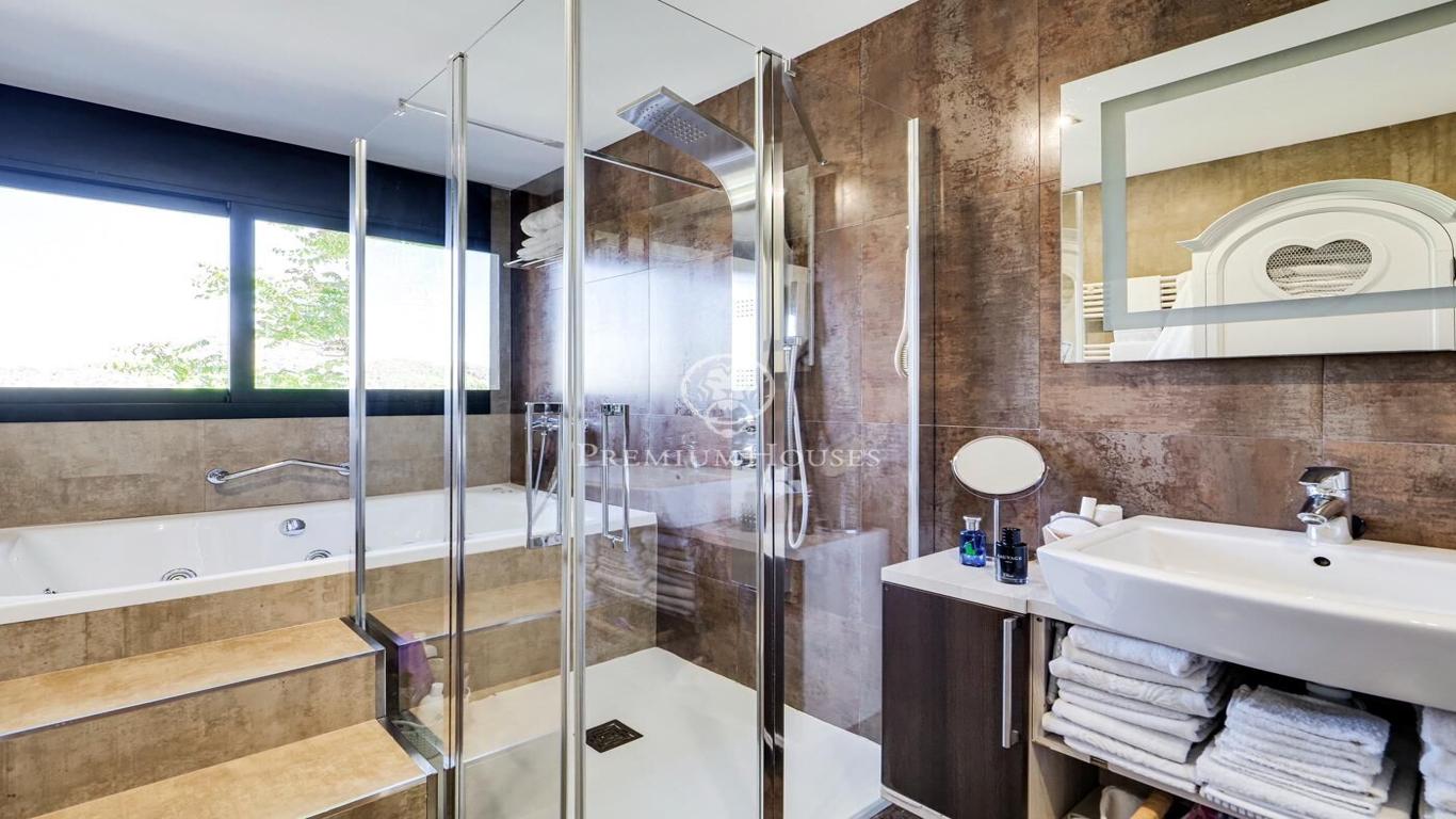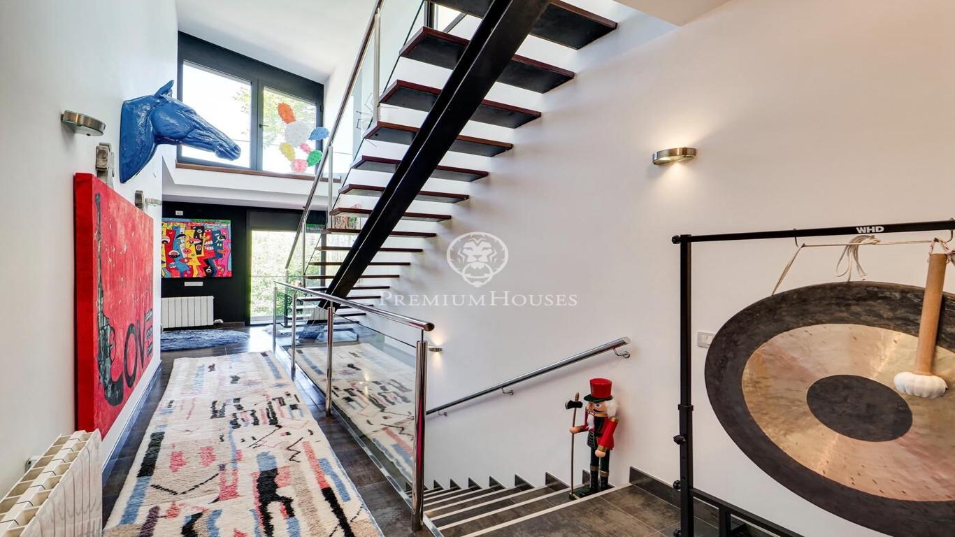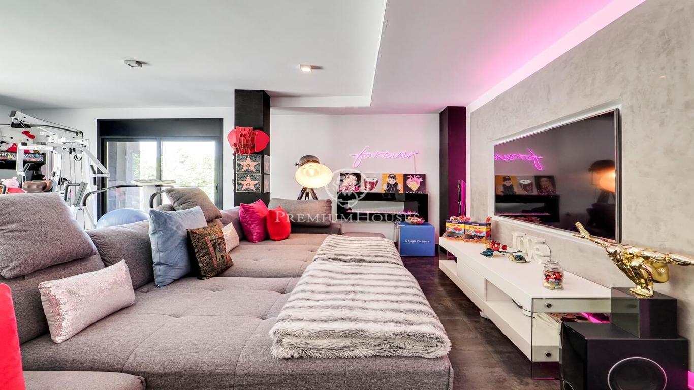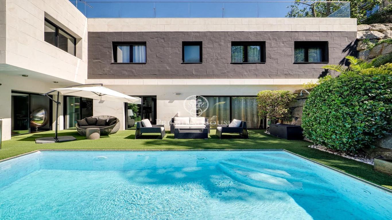 We present this spectacular contemporary and eclectic style house of 530 m located in Les Planes, in Sant Cugat del Vallés. On a plot of 1000 m with stunning views. A residential enclave of exclusive single-family homes in the heart of Collserola.The property is distributed over four floors with lift. On the ground floor there is a garage with capacity for four vehicles. On accessing the property via the main staircase, on the ground floor there is a large open-plan room that can be used as a play, leisure and work area with several exits to the terraces. The side terrace, with a chill-out area, and the front terrace leading to the entrance, where you can enjoy spectacular views of the mountains and the natural surroundings.On the first floor, we find the day area, a toilet, a large living room with fireplace and a dining room with access to a magnificent terrace with heated pool. The garden also connects to the fully equipped kitchen with access to a large pantry. The kitchen has access to another back terrace where we find a fantastic space with a main table perfect for your guests.with a main table perfect for your guests. Attached to the kitchen there are two bedrooms with a bathroom that connect to the terrace and the garden.On the first floor, we find the night area which is distributed in a bedroom with dressing room and private bathroom, two double bedrooms, another bathroom, a dressing room and the large master suite with dressing room and bathroom with jacuzzi and access to a private terrace.The property has multiple outdoor spaces ideal for relaxing. On the roof terrace there is a spectacular chill-out area with sofas perfect for sharing with family and friends with spectacular views of the natural surroundings. The property is sold with furniture included, ready to move into.This is a unique opportunity to enjoy an absolute luxury lifestyle.