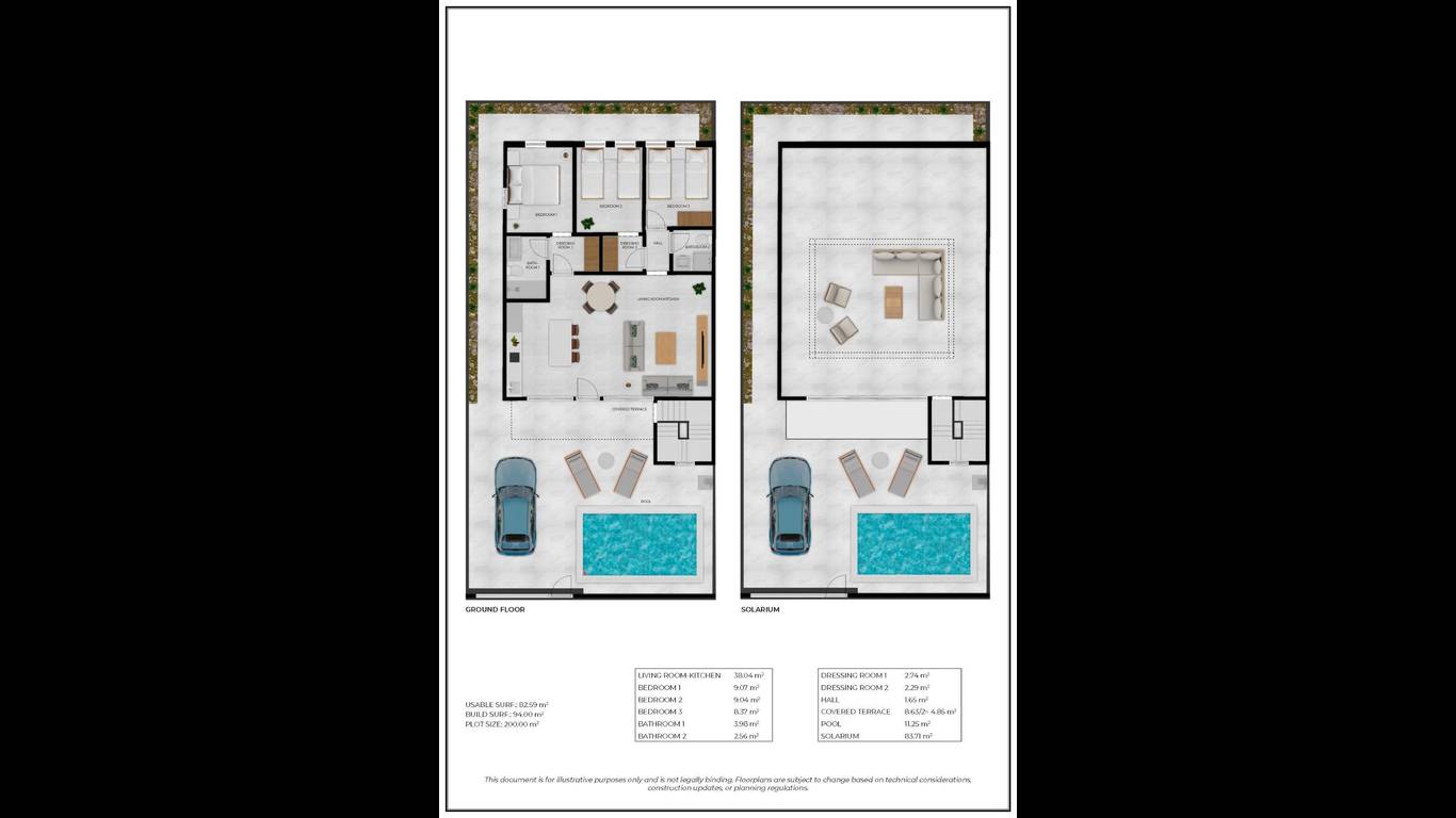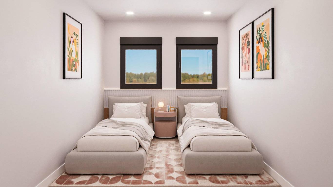 Newly built residential development of villas and townhouses in Fuente Álamo, Murcia.This location offers an exceptional natural environment, far from the hustle and bustle of big cities and the tourist pressure of the coast. Furthermore, we are committed to working from a sustainable development perspective, minimising our environmental impact and maximising integration with the local community. Here, your dreams of a peaceful and sustainable lifestyle become a reality. Imagine waking up every morning in a stunning natural setting, surrounded by peaceful landscapes and the unique beauty of the Murcian countryside.This development prioritises energy efficiency, the use of environmentally friendly materials and harmonious integration with the rural environment. From the design of the property to the planning of the development, we strive to reduce our carbon footprint and promote responsible practices in all our operations.Full ducted air conditioning, hot/cold.Video intercom system.Colour-lacquered security access door with lock and anti-vandal security fittings.Cupboards with storage space, lined inside, lacquered in white.Kitchen furniture with appliances included.Hot water by aerothermal energy.Electric blinds.Pergolas in solariums.Private 2.5x4.5m swimming pool with underwater night lighting and salt chlorination system.Pre-installation for outdoor kitchen/jacuzzi in solarium.Fuente Álamo de Murcia is a town and municipality in the Region of Murcia, in southern Spain. It is located 22 km northwest of Cartagena and 35 km southwest of Murcia.The town is located in the Mar Menor basin, surrounded by the Algarrobo, Los Gómez, Los Victorias and Carrascoy mountain ranges. The water from these mountains flows down into the Rambla de Fuente Álamo and then into the Mar Menor.Fuente Álamo is 30 minutes from Murcia - Corvera airport. Nearest shops 6 km away.