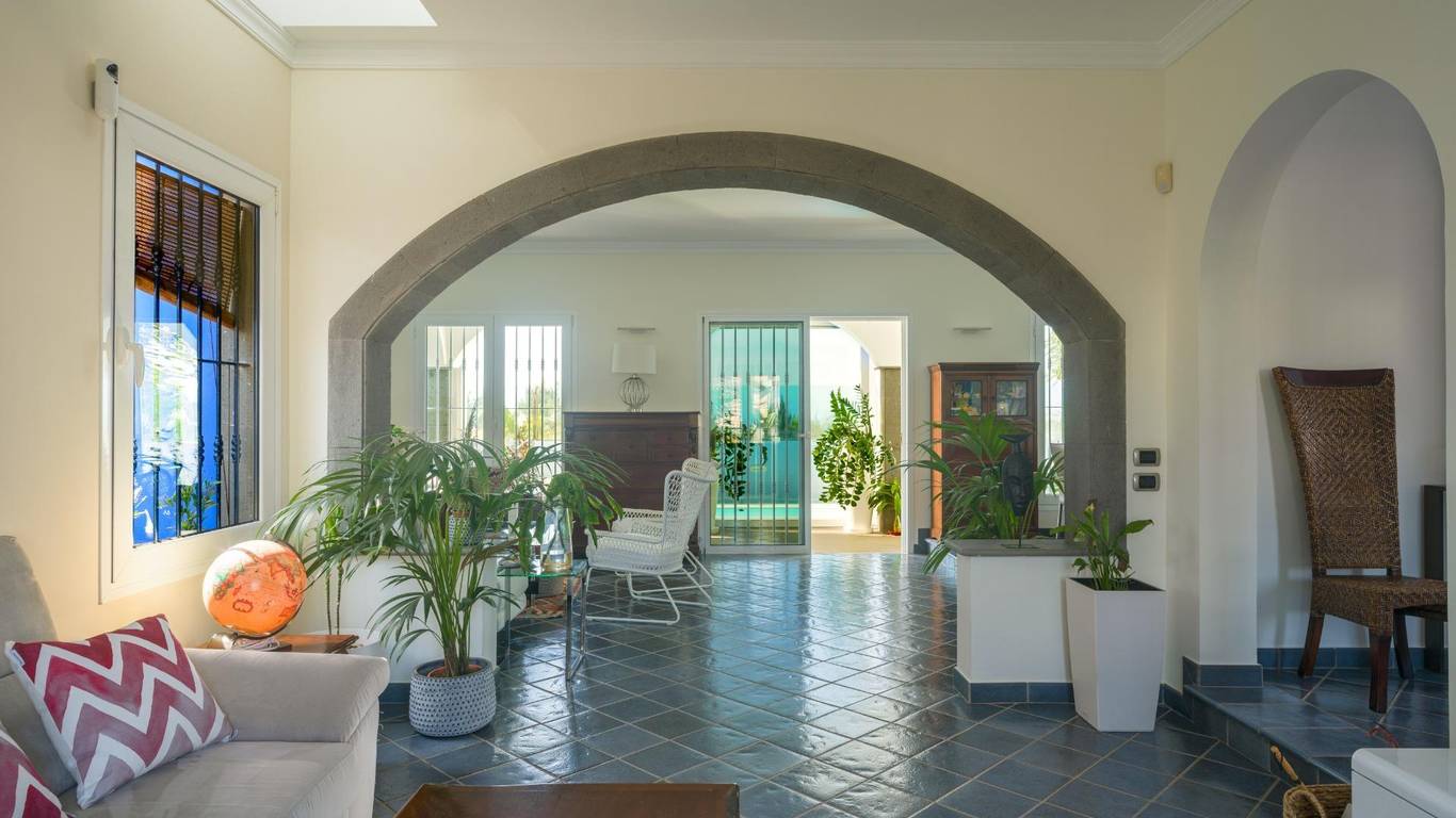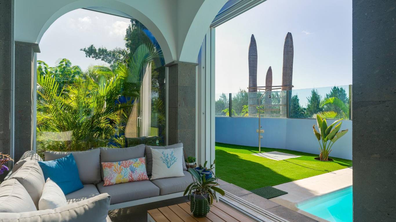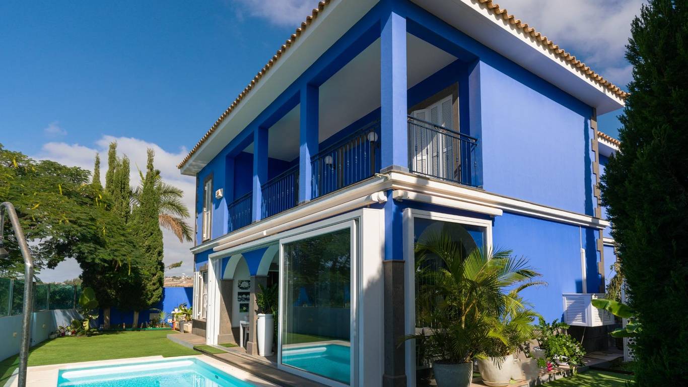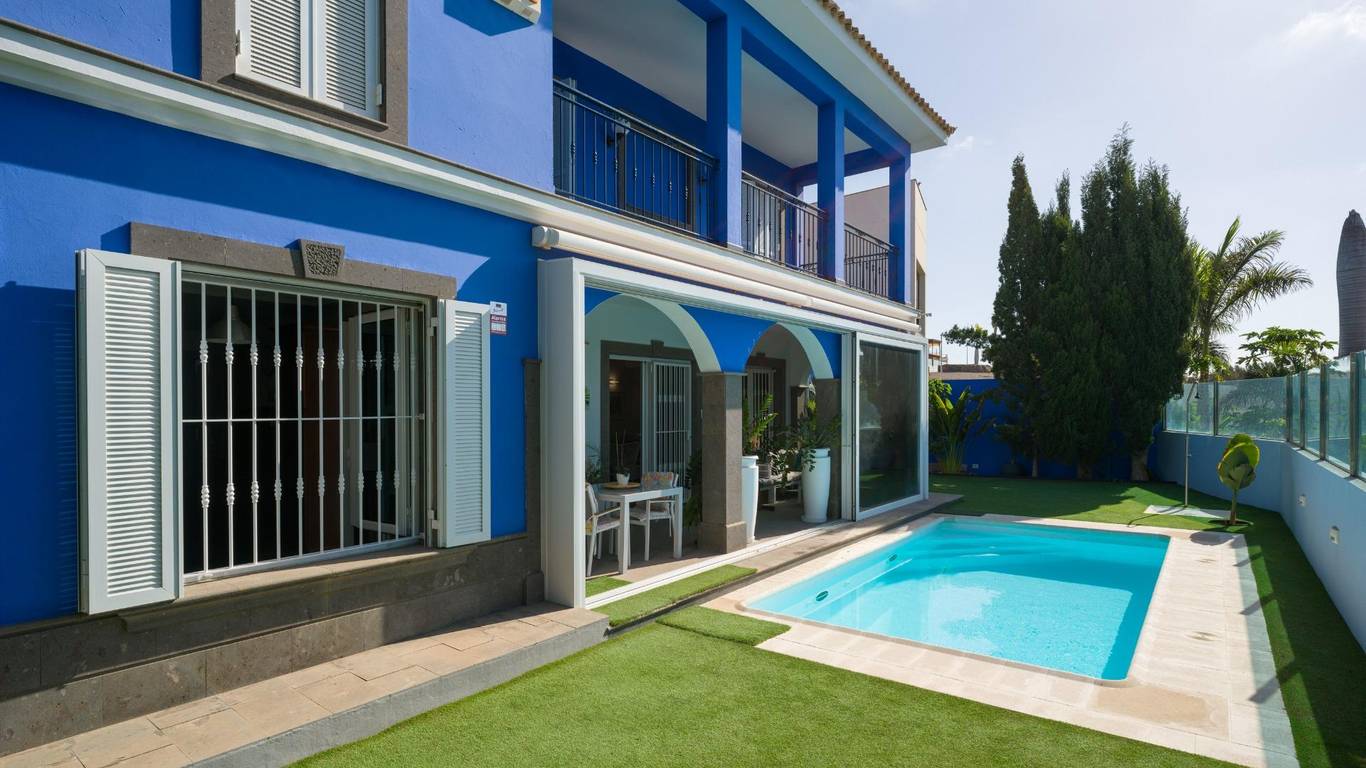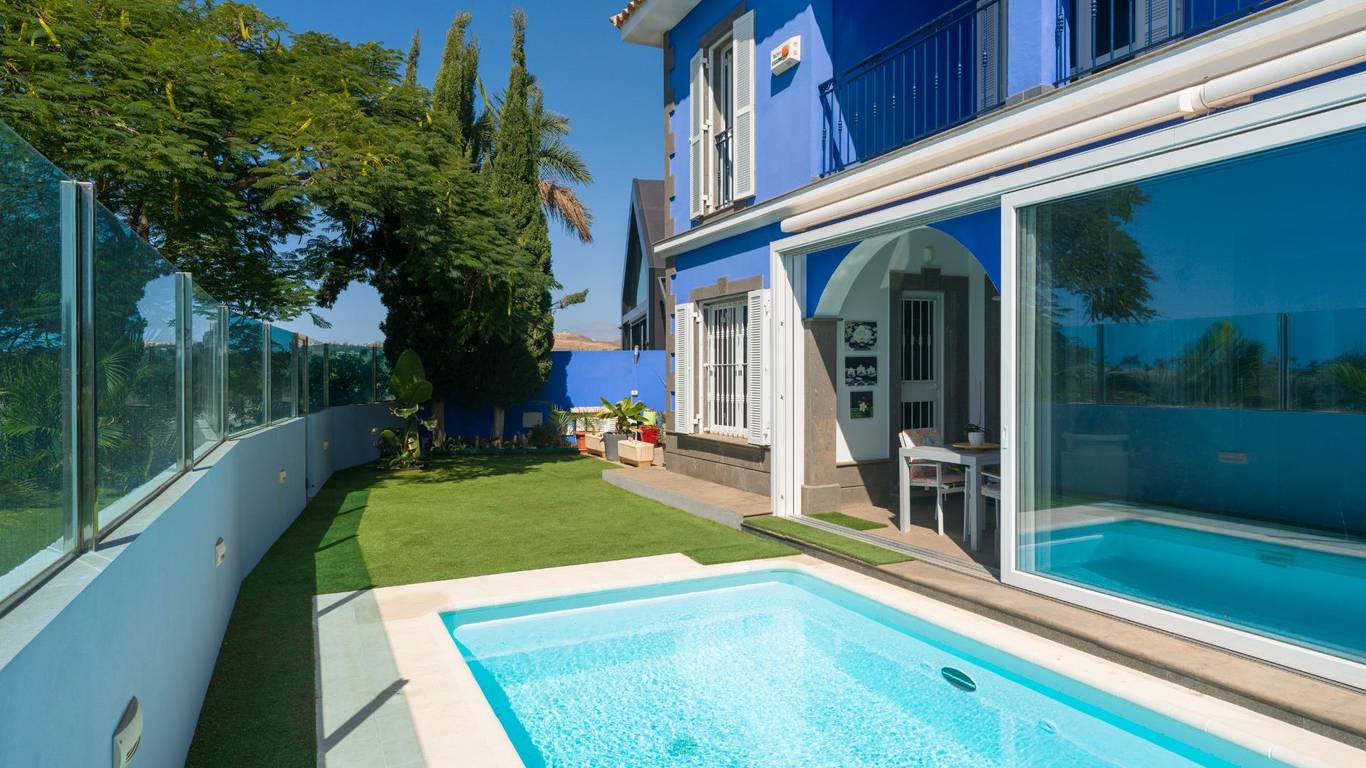 Spektakuläres freistehendes Chalet in einer der exklusivsten Wohngegenden von El Hornillo Meloneras, nur wenige Minuten vom Golfplatz, der Strandpromenade von Meloneras und mit hervorragender Anbindung an die Autobahn GC-1 entfernt.