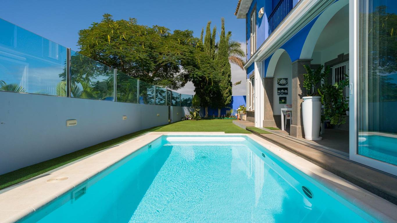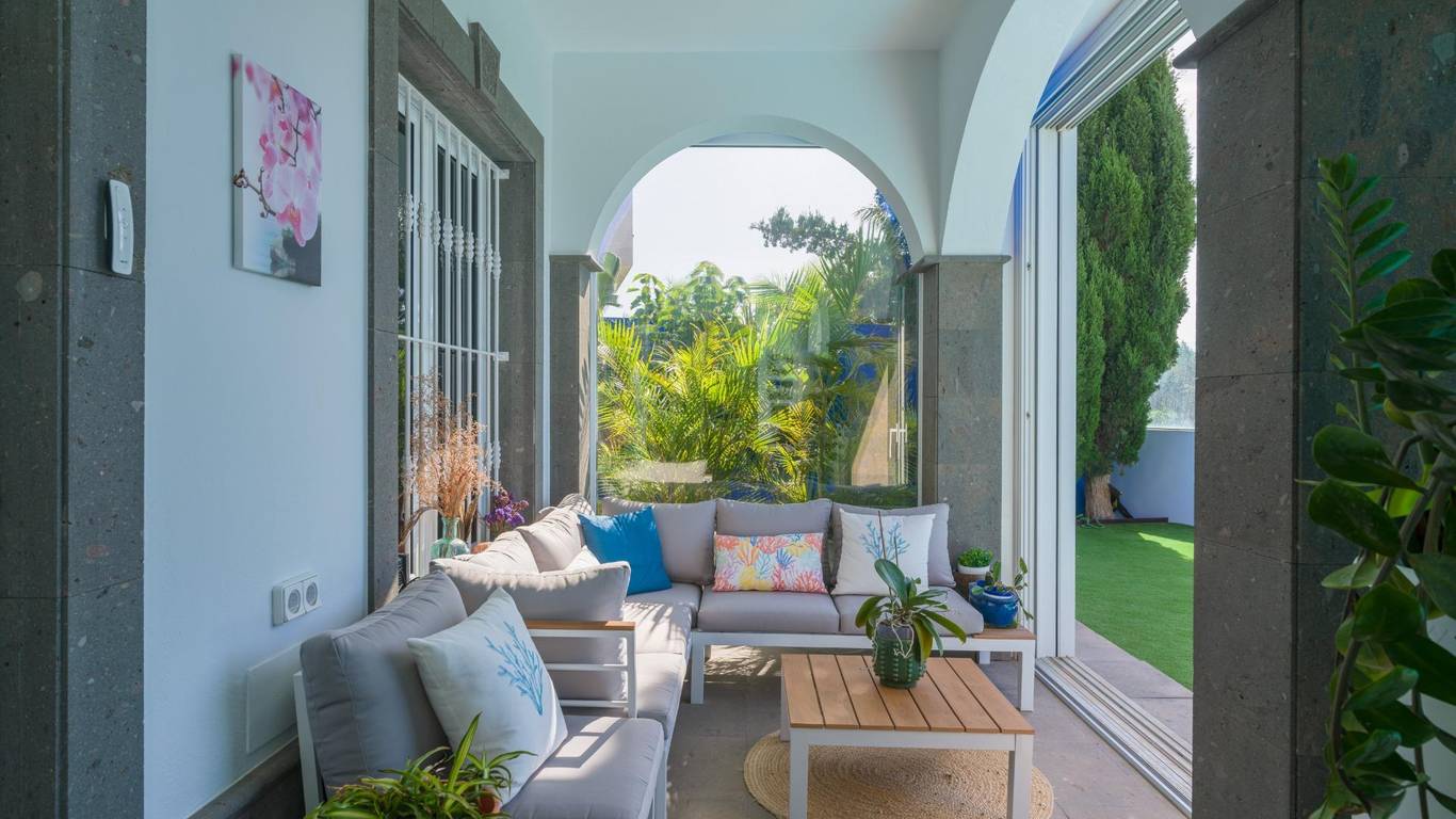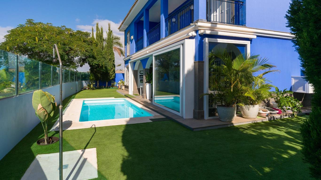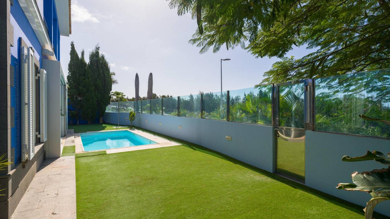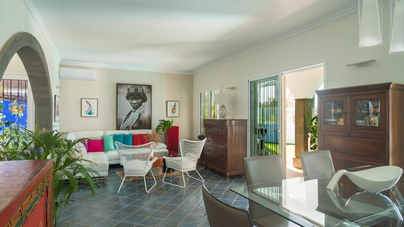 Spektakuläres freistehendes Chalet in einer der exklusivsten Wohngegenden von El Hornillo Meloneras, nur wenige Minuten vom Golfplatz, der Strandpromenade von Meloneras und mit hervorragender Anbindung an die Autobahn GC-1 entfernt.