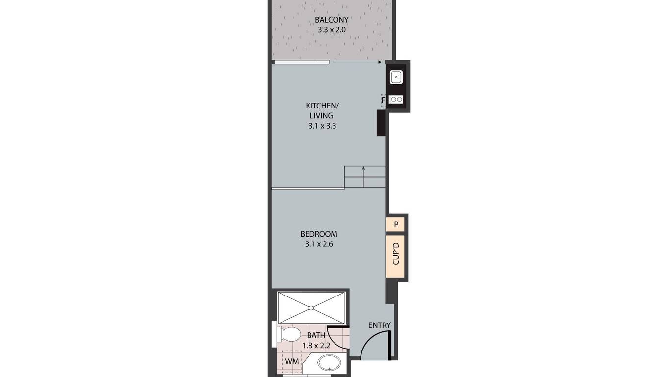 Dieses gemütliche Studio besticht durch hervorragendes natürliches Licht und ein funktionales Design, das den Raum optimal nutzt und eine angenehme, einladende Atmosphäre schafft.