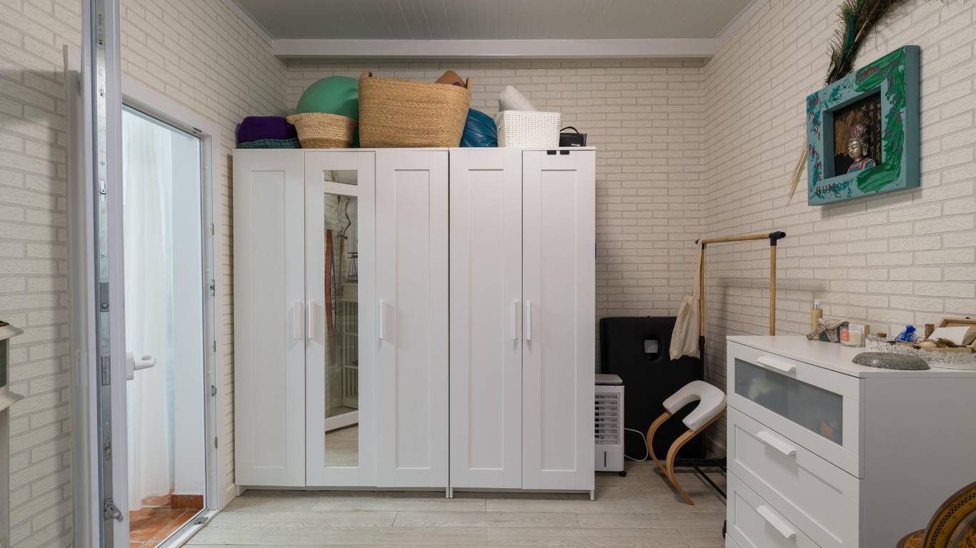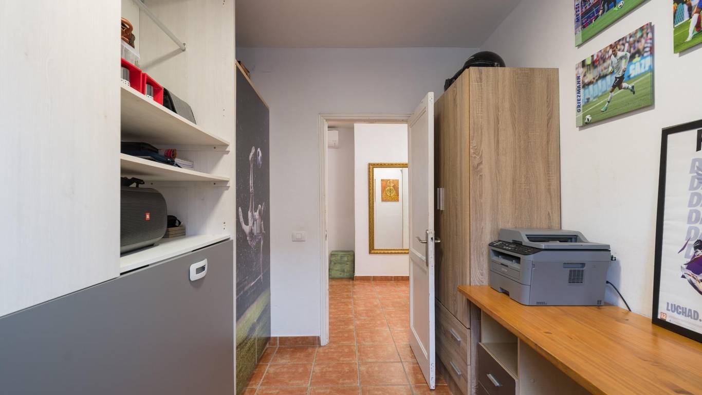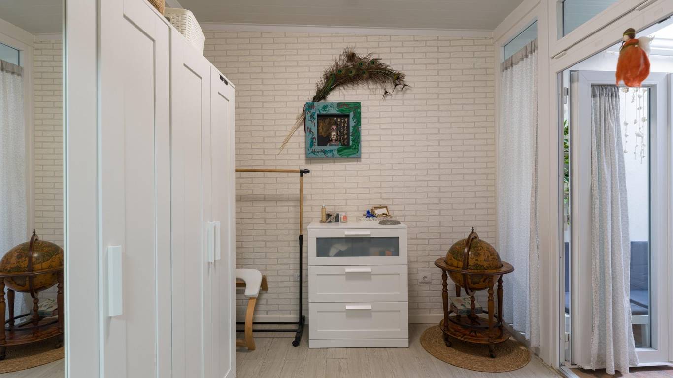Die Immobilie verfügt über eine bebaute Fläche von 128 m2 und ist aufgeteilt in zwei Doppelschlafzimmer (eines davon mit Ankleideraum und Einbauschränken), ein weiteres Einzelzimmer, zwei komplette Badezimmer, eine separate Küche mit Zugang zu einem praktischen Hauswirtschaftsraum sowie ein sehr geräumiges und lichtdurchflutetes Wohn-Esszimmer mit großen Fenstern.